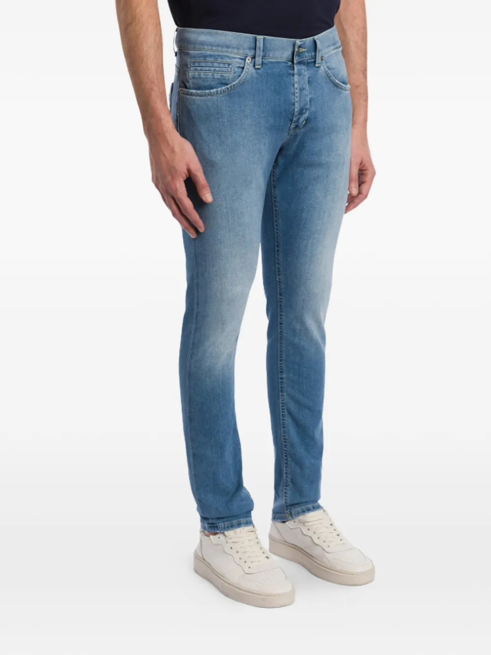 azul costuras del mismo tono cinco bolsillos cierre de botón