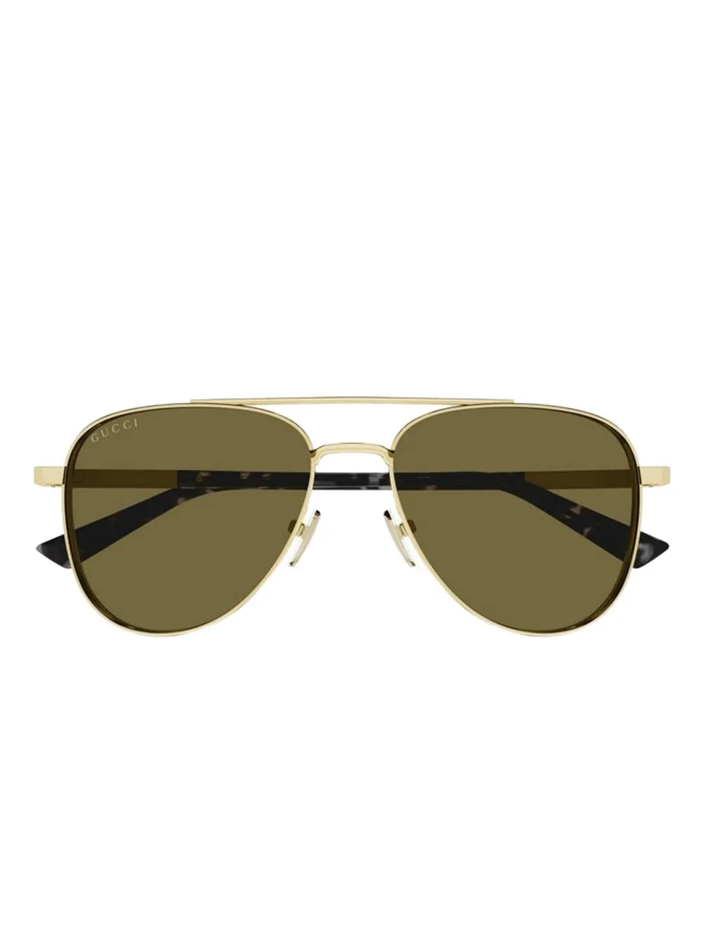 gold-tone tinted lenses pilot frame nose pads These glasses come with a protective case.