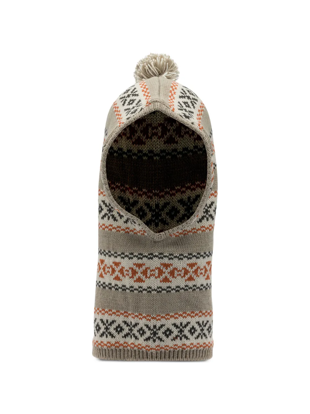 beige geometric pattern pompom detail