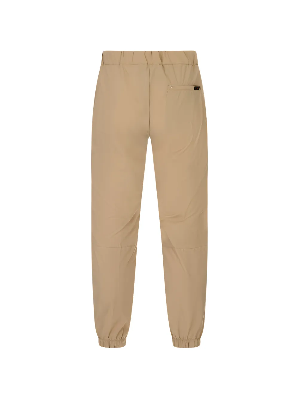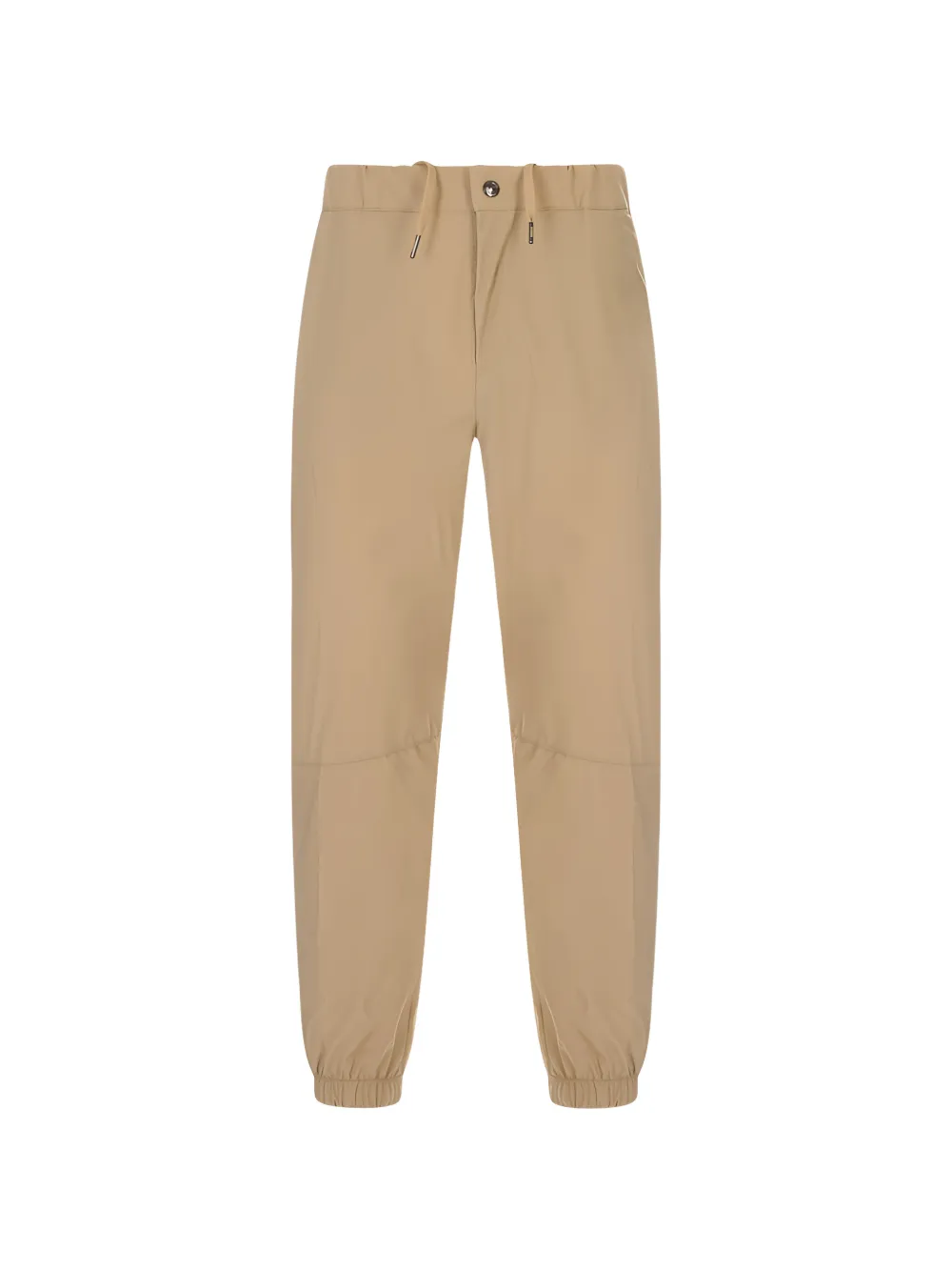 beige elasticated drawstring waistband front button and zip fastening two side inset pockets rear zip-fastening pocket elasticated cuffs logo patch to the rear