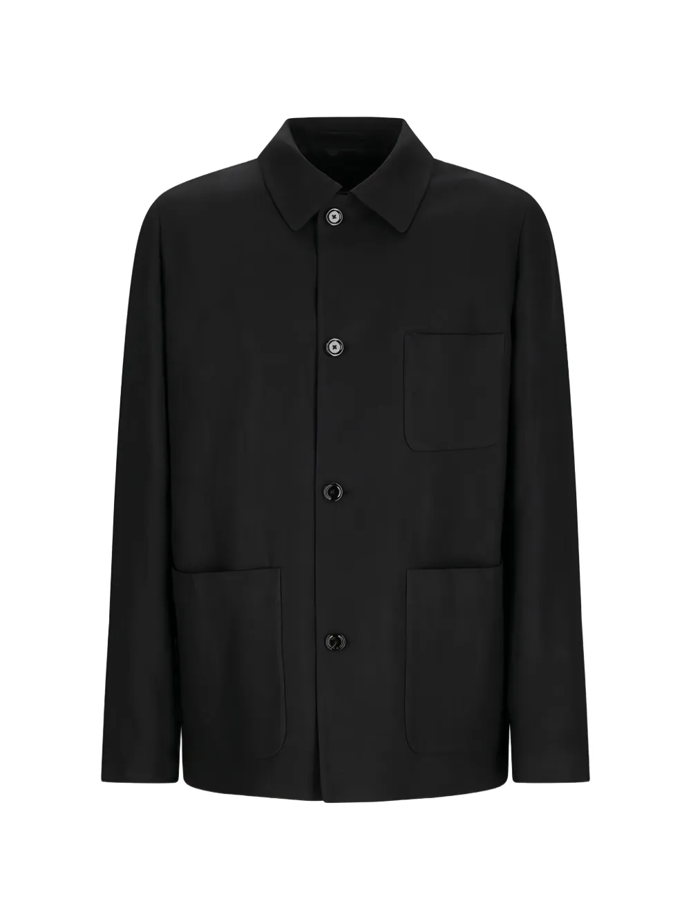 black button fastening point collar long sleeves patch pocket