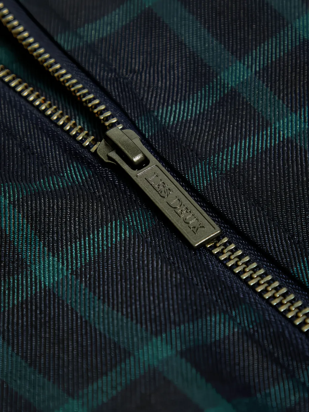 dark navy checked zip fastening collar front pockets long sleeves