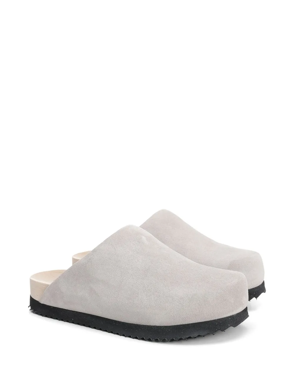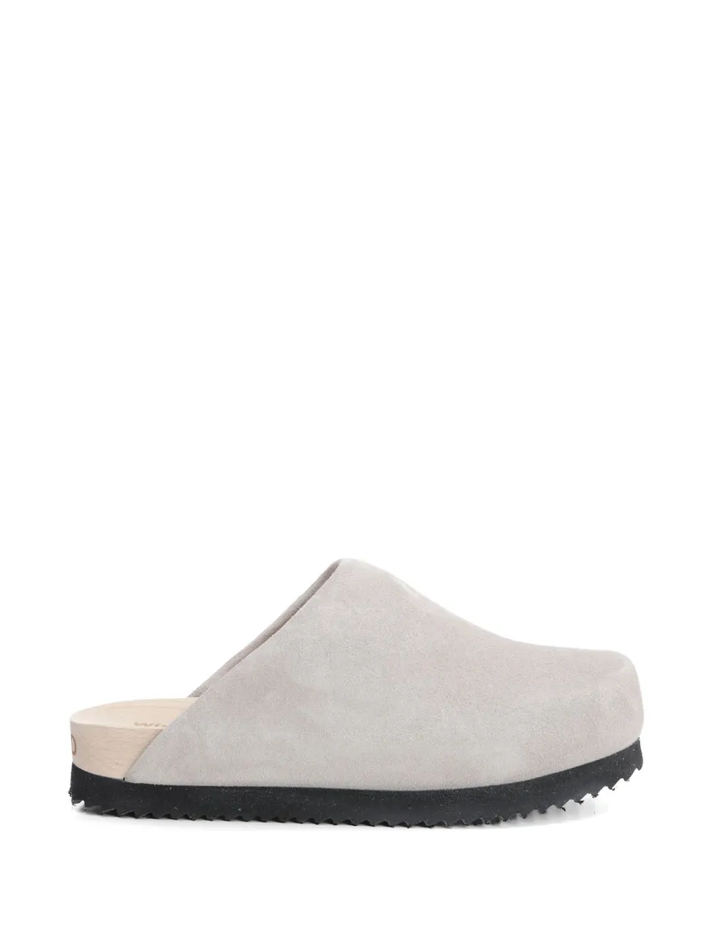grey round toe slip-on style branded wooden insole wooden midsole ridged rubber sole