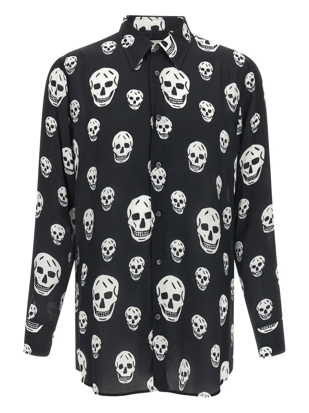white and black skull print button closure long sleeves