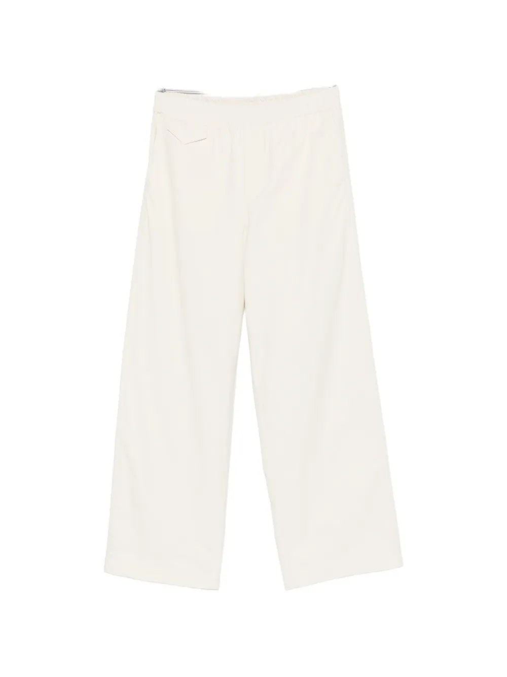 chalk white cotton elasticated waistband two side inset pockets rear patch pocket wide leg straight hem