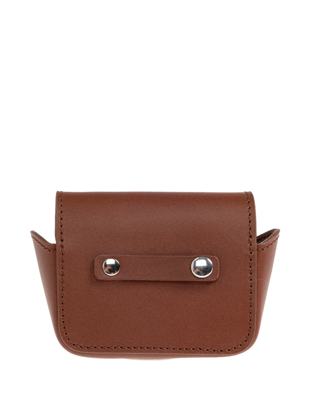 brown press-stud fastening top handle silver-tone hardware tonal stitching leather case for bags