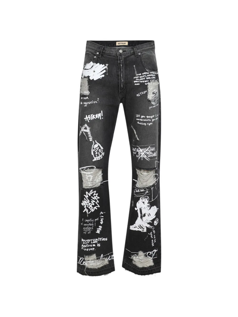 black printed five pockets frayed hem