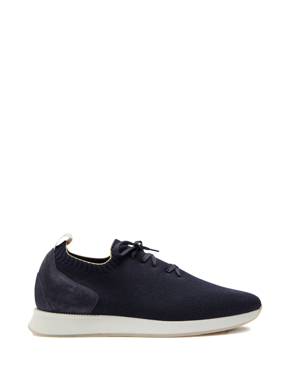 navy blue knit upper lace-up fastening pull-tab at rear rubber sole