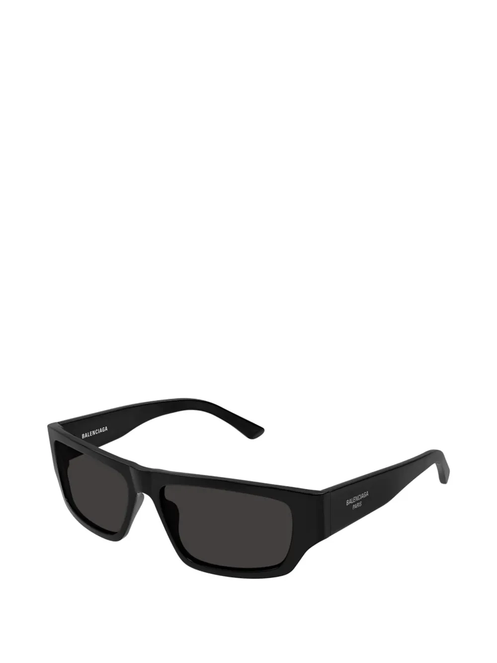 black rectangle frame grey tinted lenses logo print at the temple logo print to the lens curved tips These glasses come with a protective case.