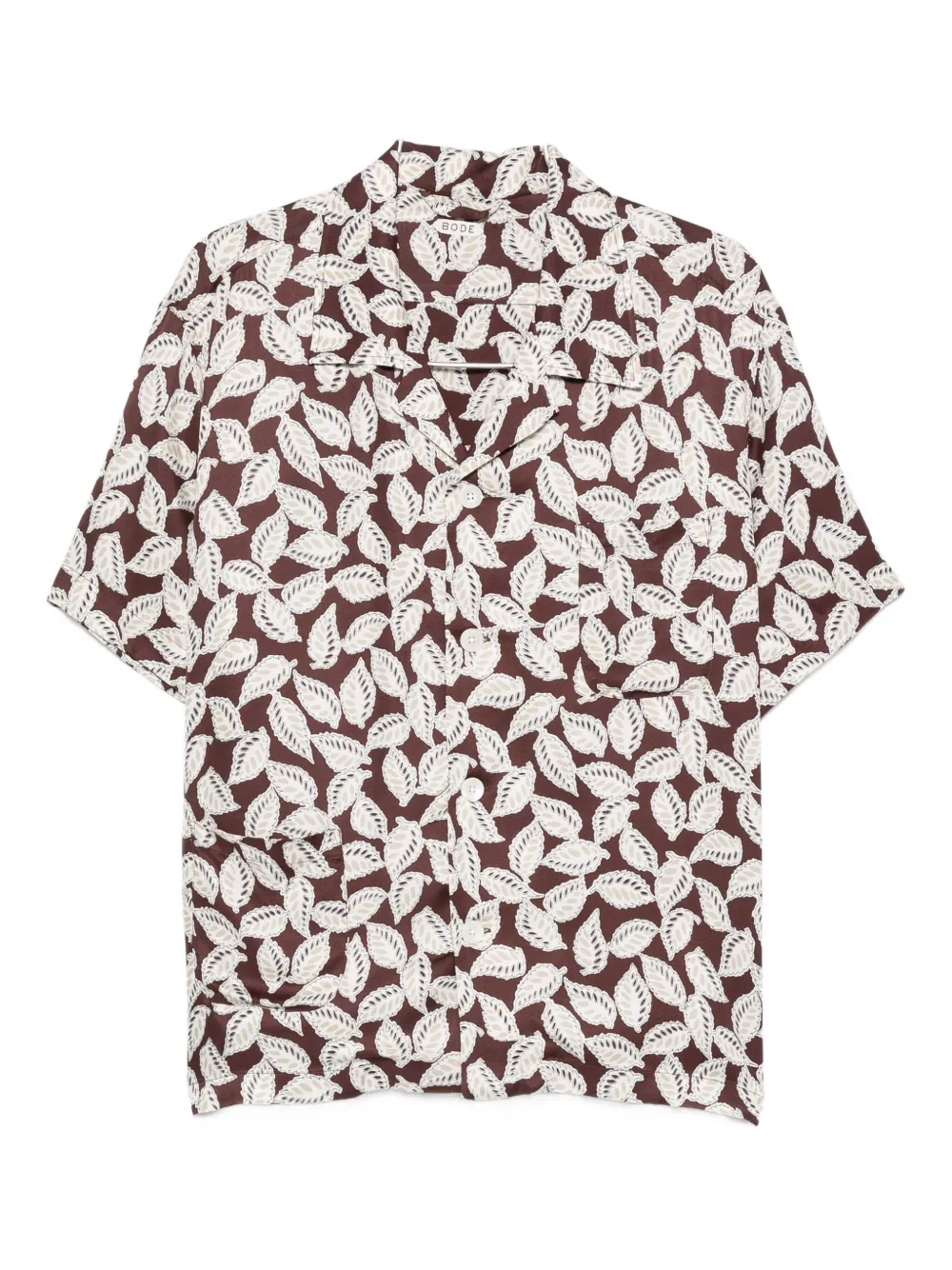 marrón estampado de hojas manga corta cuello cubano cierre con botones en la parte delantera bolsillo en el pecho