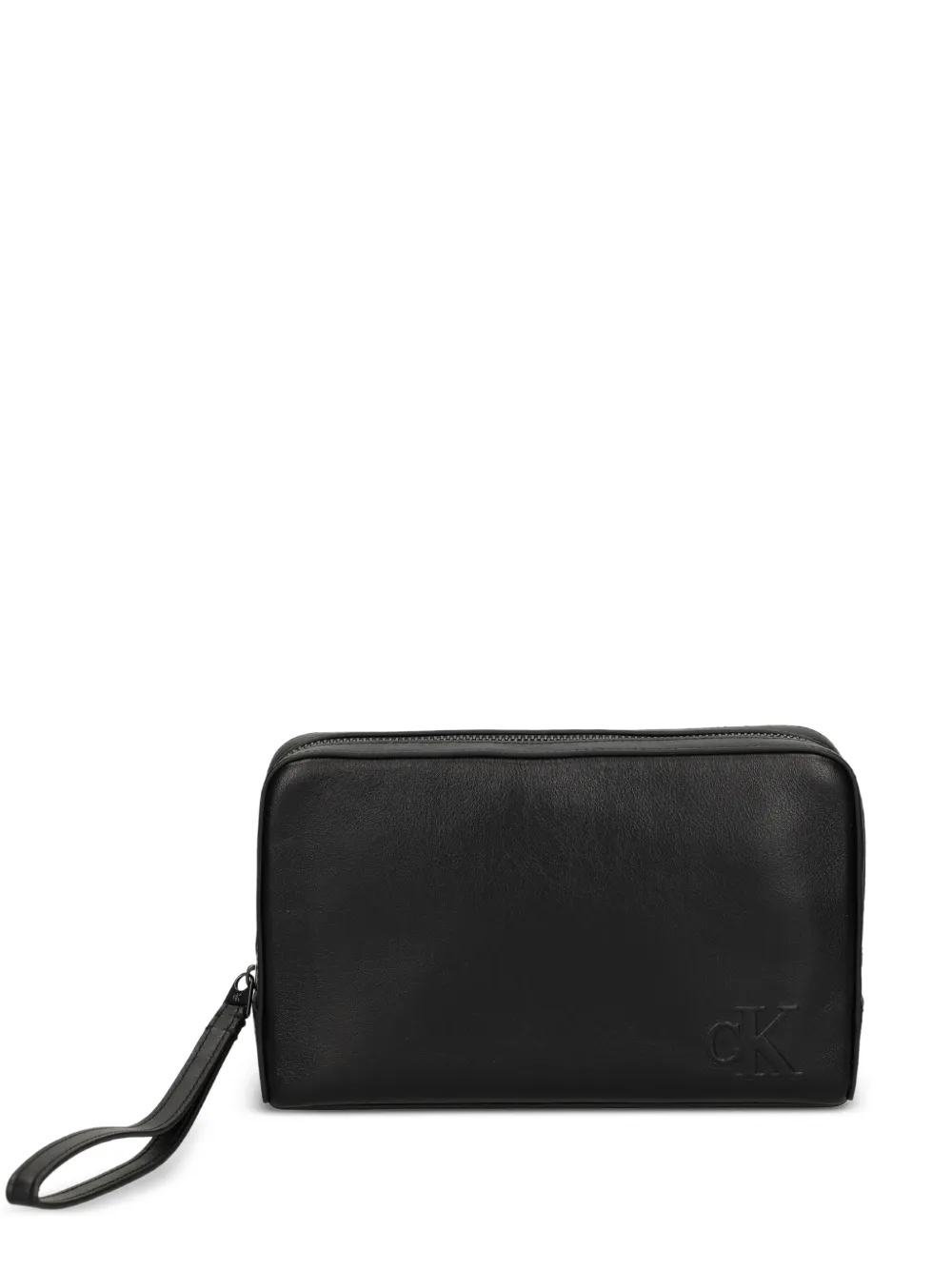black zip closure wrist strap embossed logo