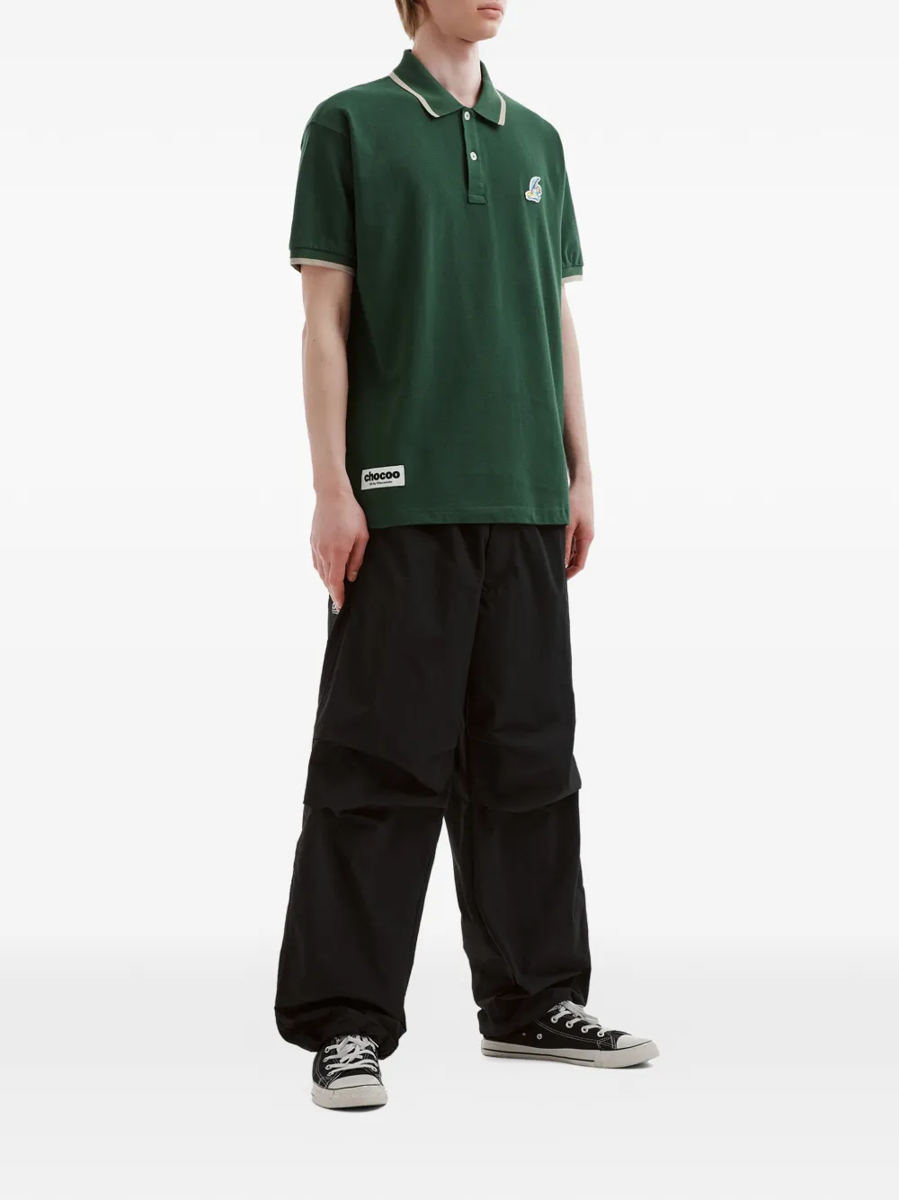 green cotton trim detail patch detail short sleeves button fastening