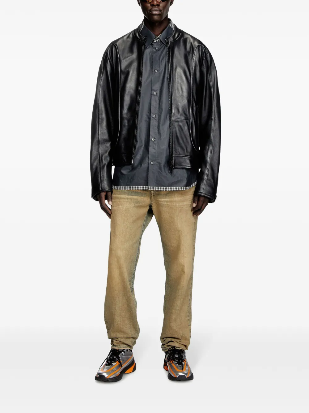 black panelled design zip fastening two zip pockets long sleeves