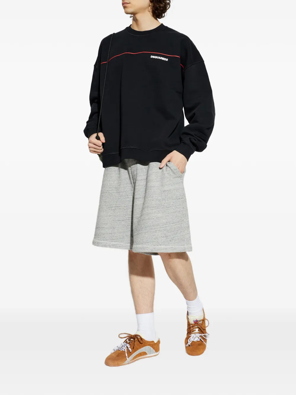 black cotton logo lettering crew neck long sleeves ribbed trim