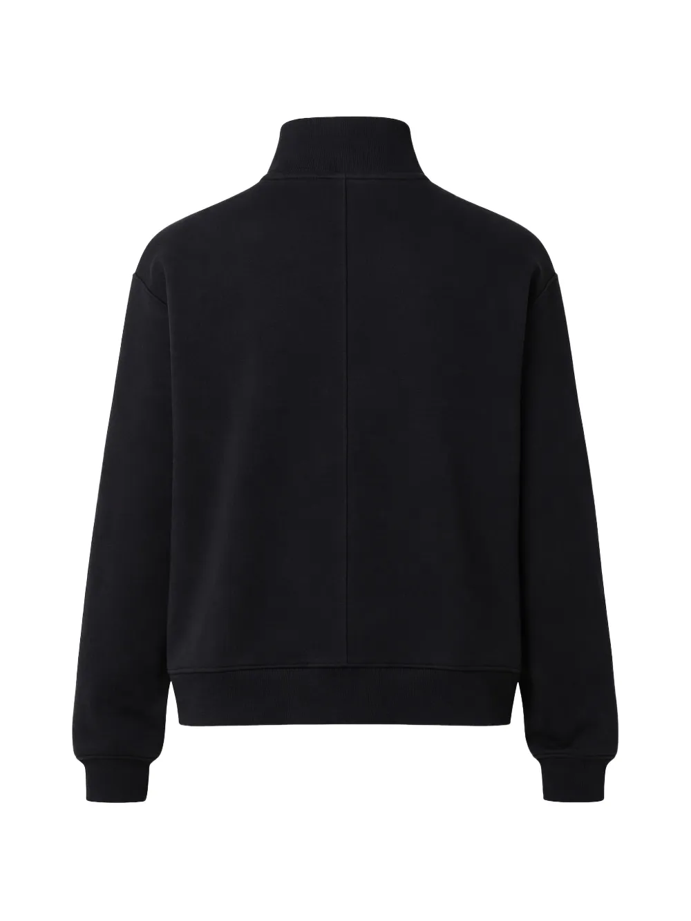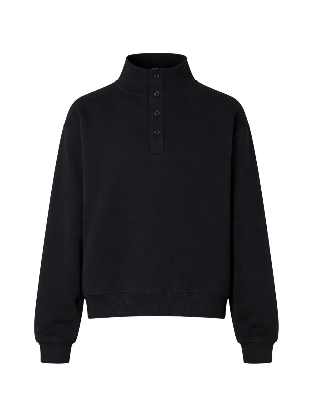 black cotton button detail high neck ribbed hem ribbed cuffs
