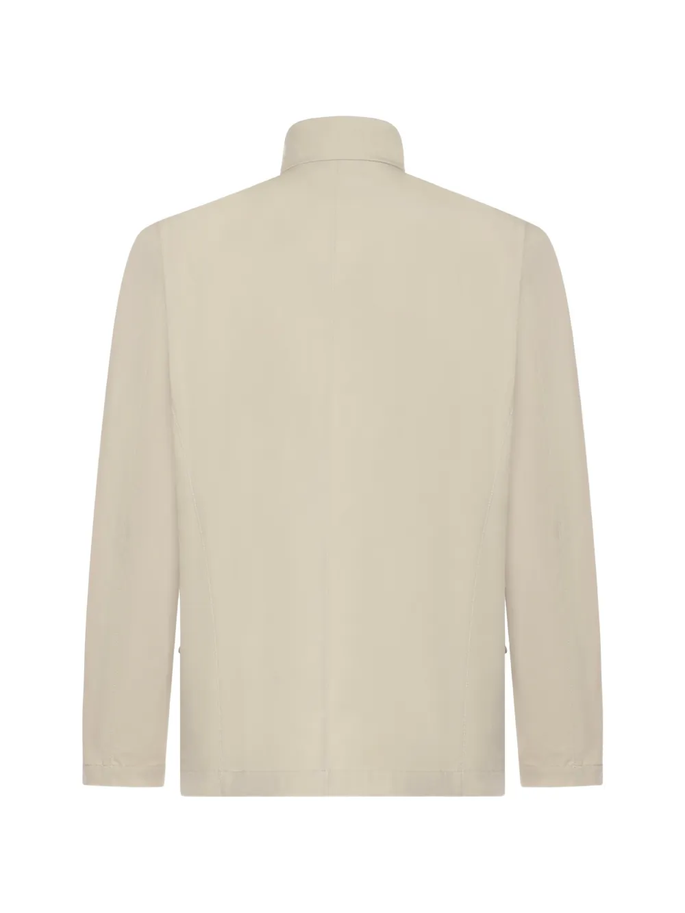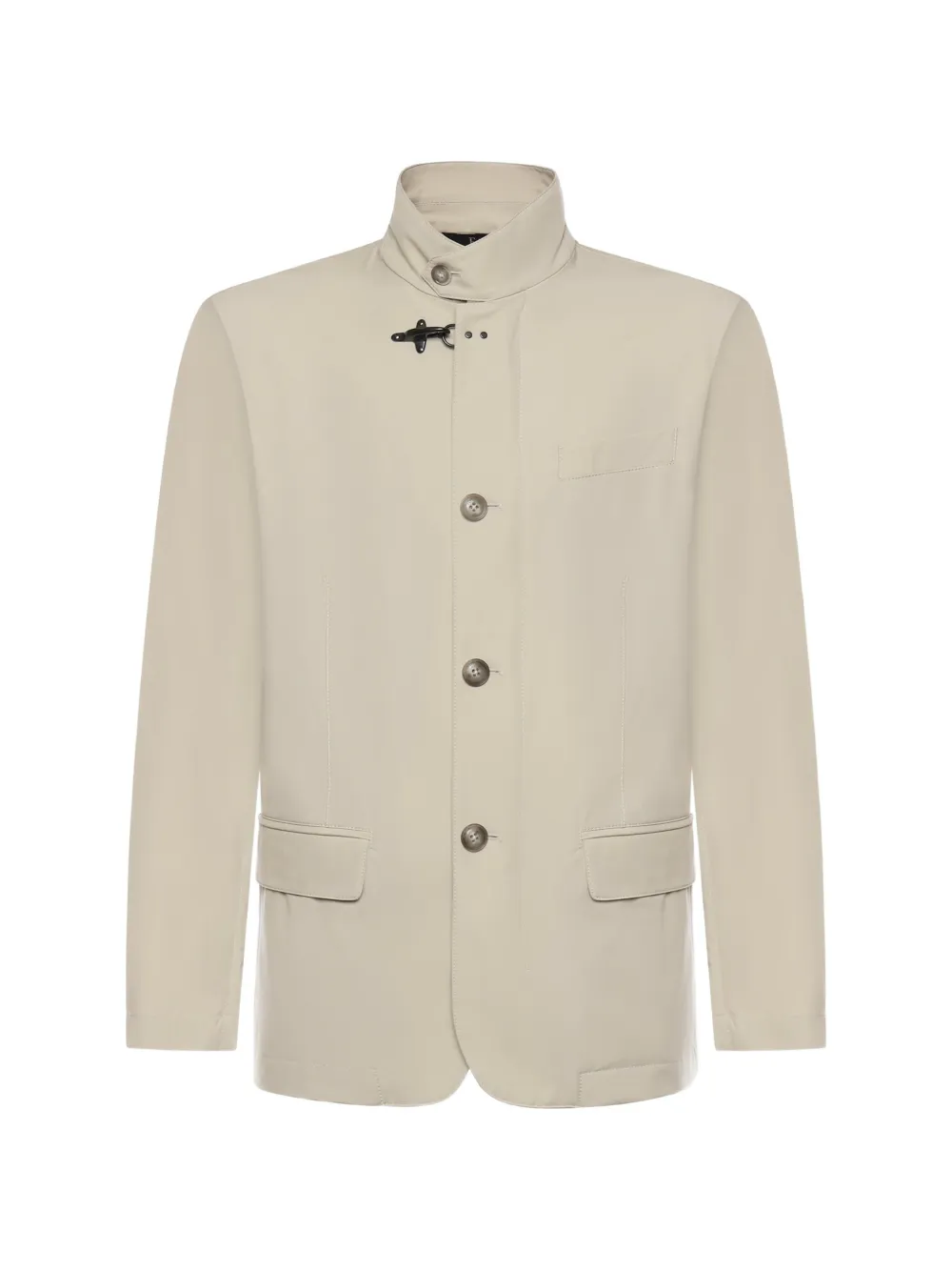 beige button fastening high neck slip pockets long sleeves tailored design