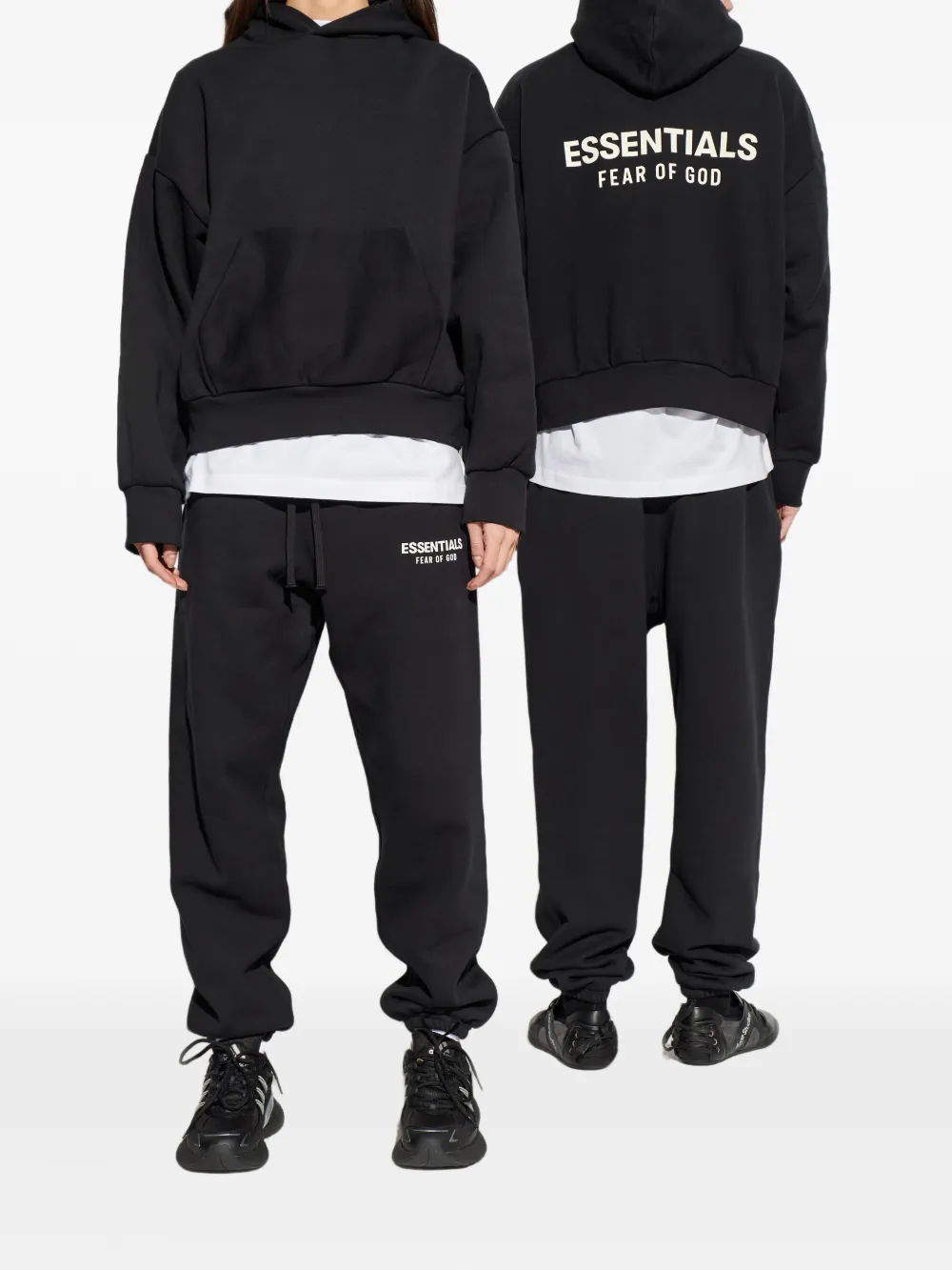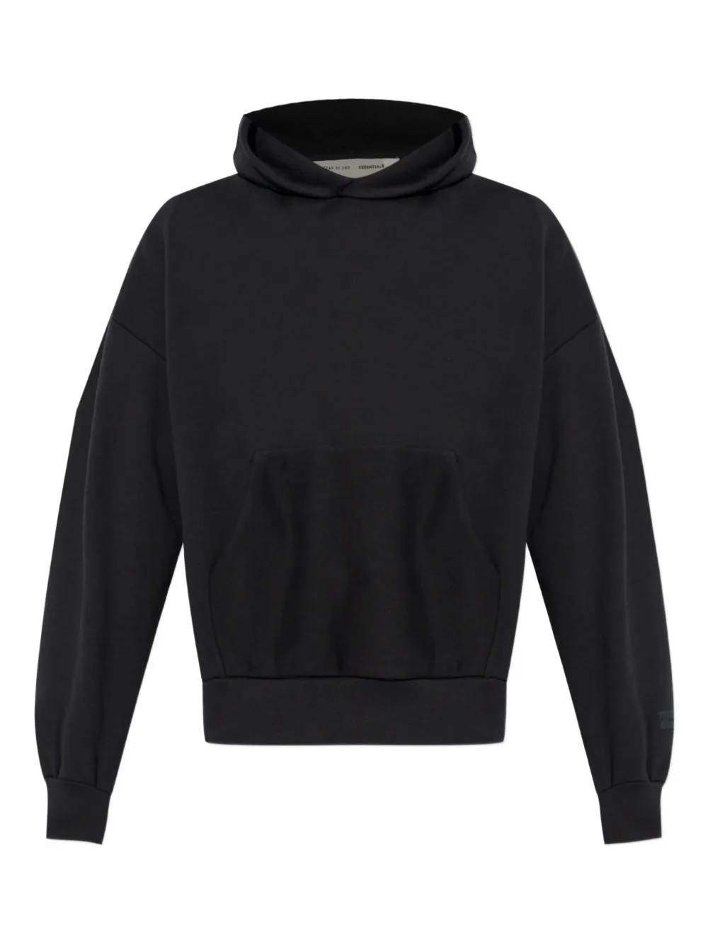 black cotton front pouch pocket long sleeves ribbed hem