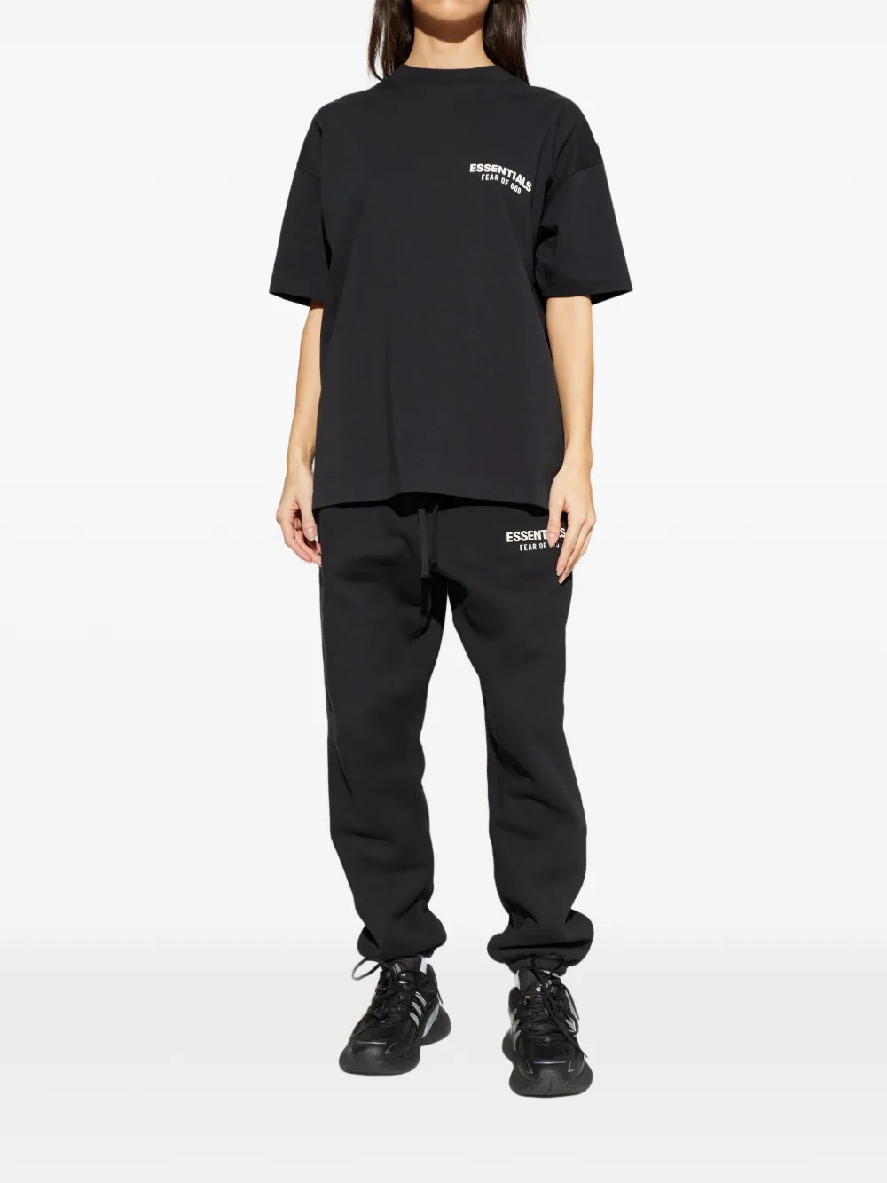 black crew neck short sleeves logo at front logo at back tonal stitching