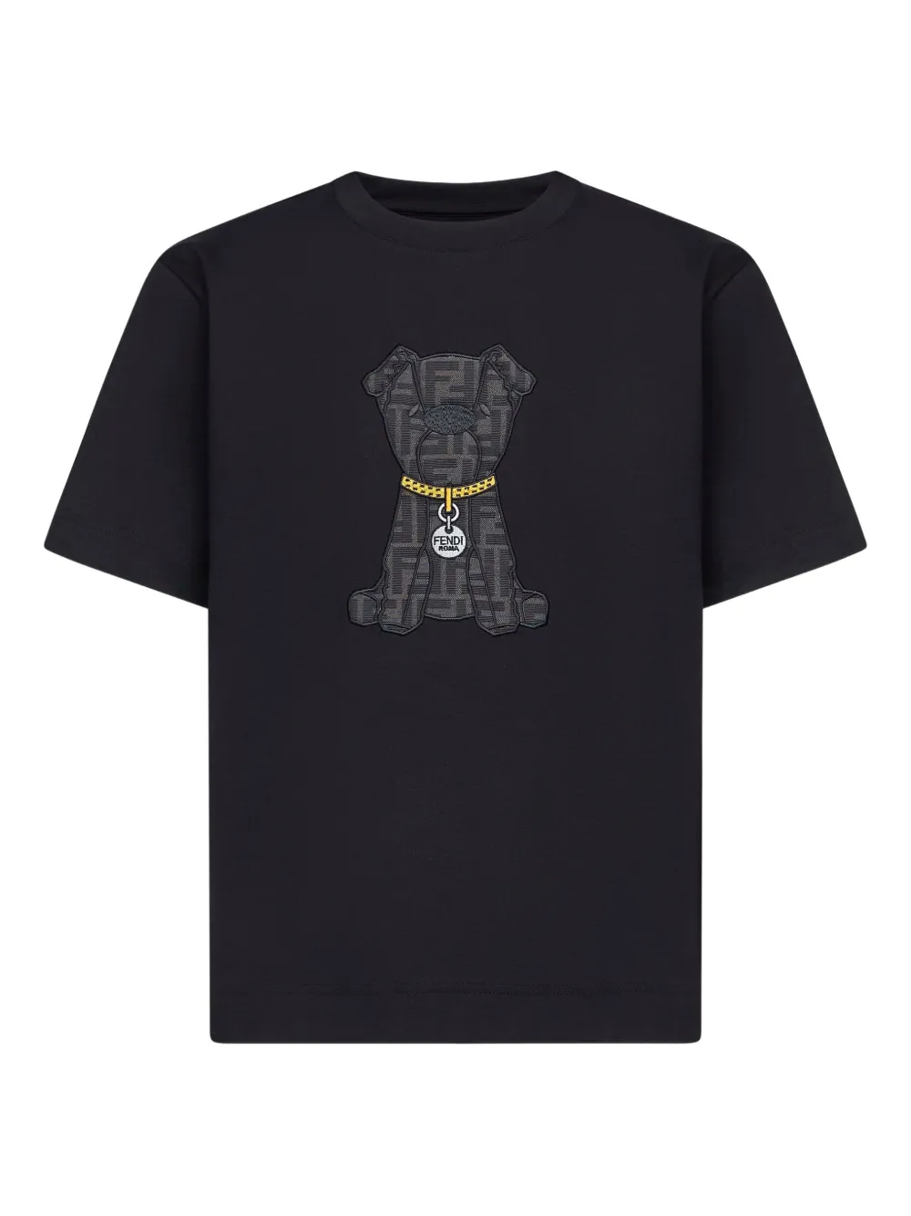 black jacquard patch ribbed crewneck short sleeves straight hem regular fit