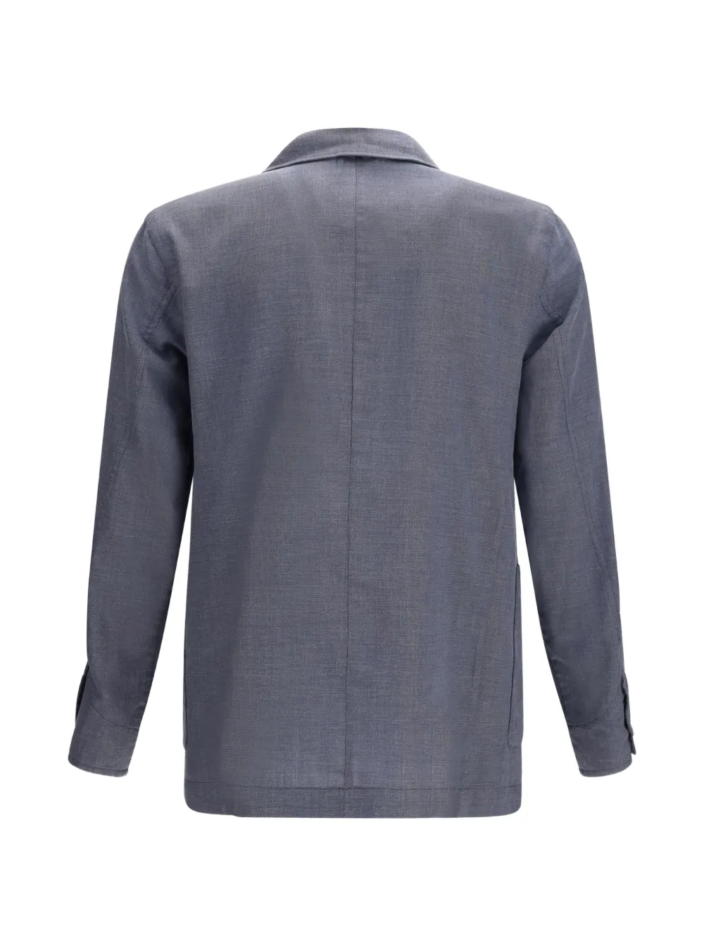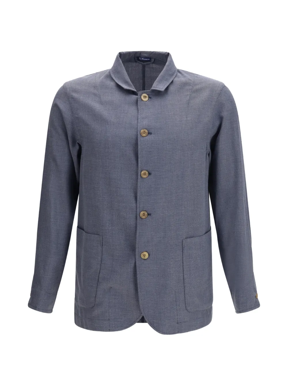 blue button fastening classic collar long sleeves two front patch pockets straight hem