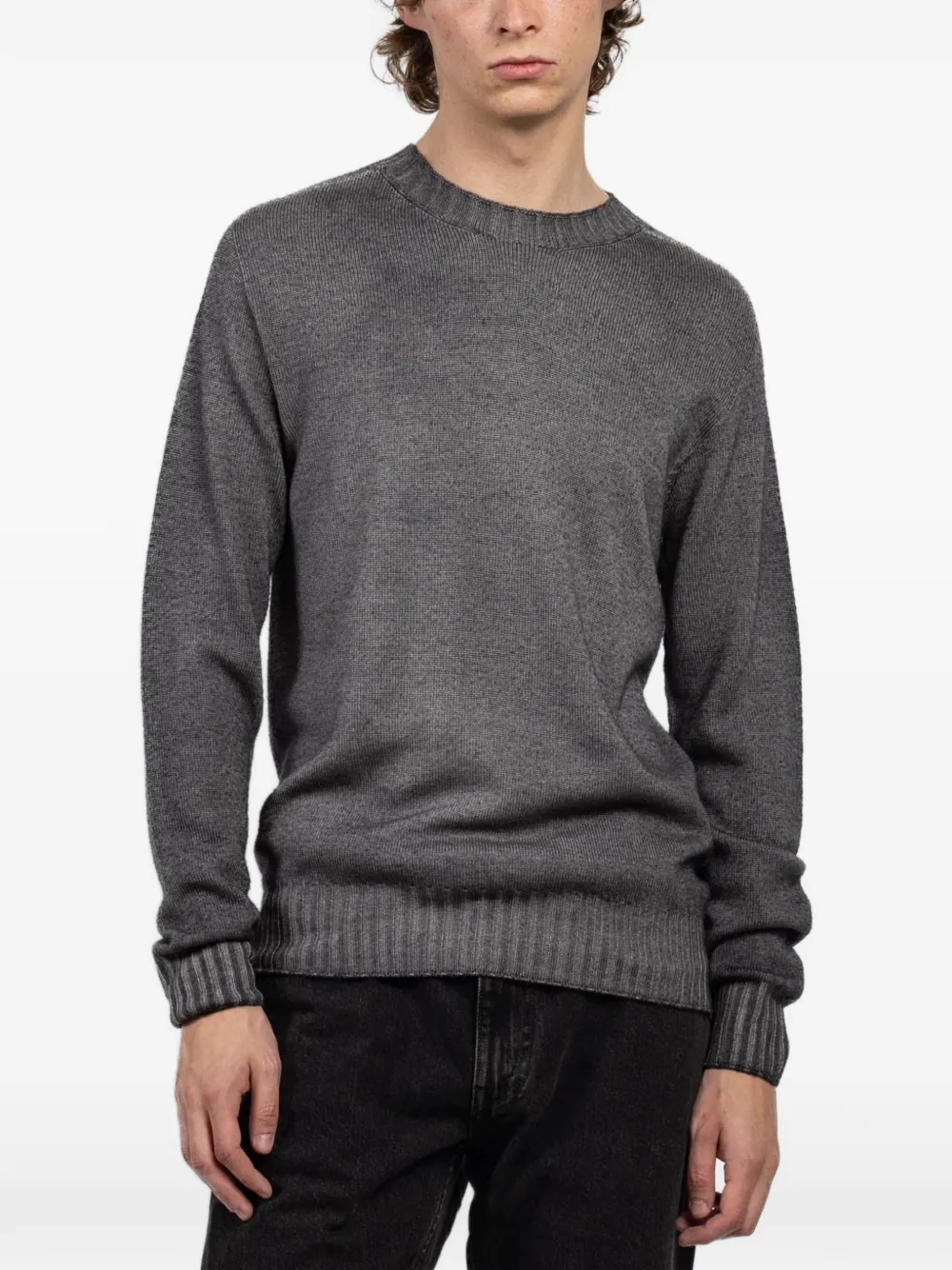suéter tejido de canalé con cuello redondo