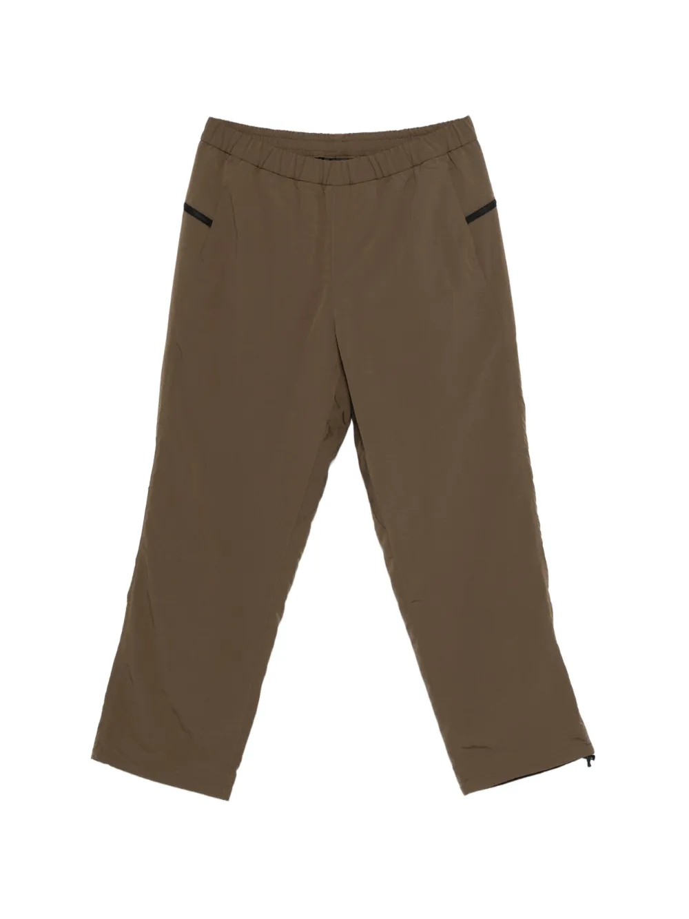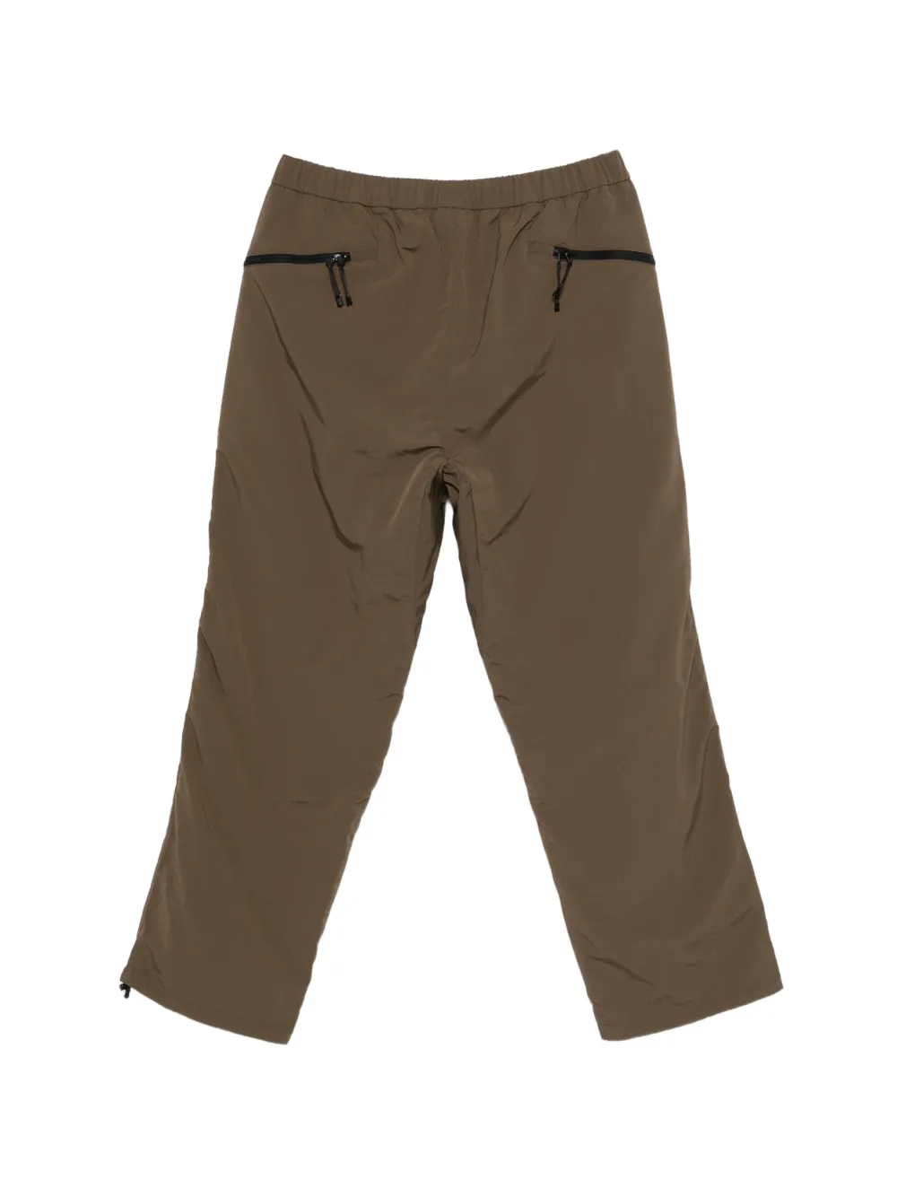 brown elastic waistband internal drawstring fastening rear zip pockets
