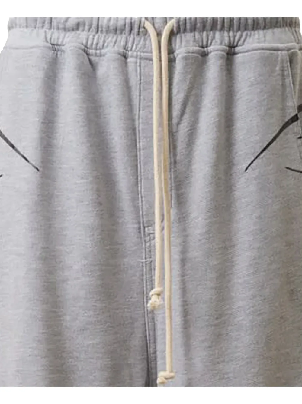 grey flame print elasticated drawstring waistband two side slit pockets jersey texture straight leg