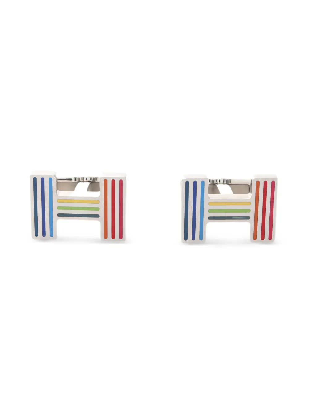silver multicolour quiz design rainbow design cufflink Condition: EXCELLENT. This previously owned item is in near-perfect condition with no signs of damage or use.