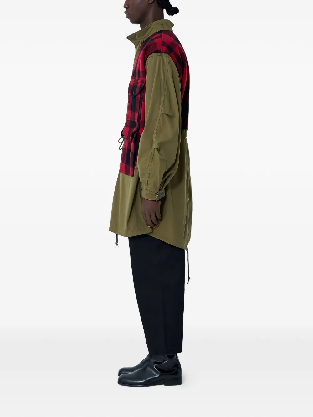 khaki check patterned panel zip sleeves front pockets rear vent