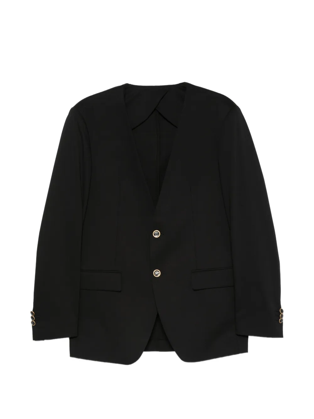 black collarless front button fastening two front flap pockets buttoned cuffs gold-tone hardware belt loops rear pockets