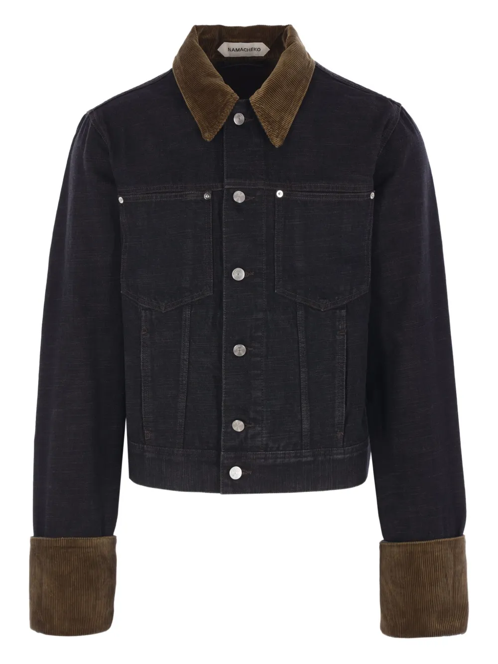 black corduroy collar reversed cuffs button fastening chest pockets