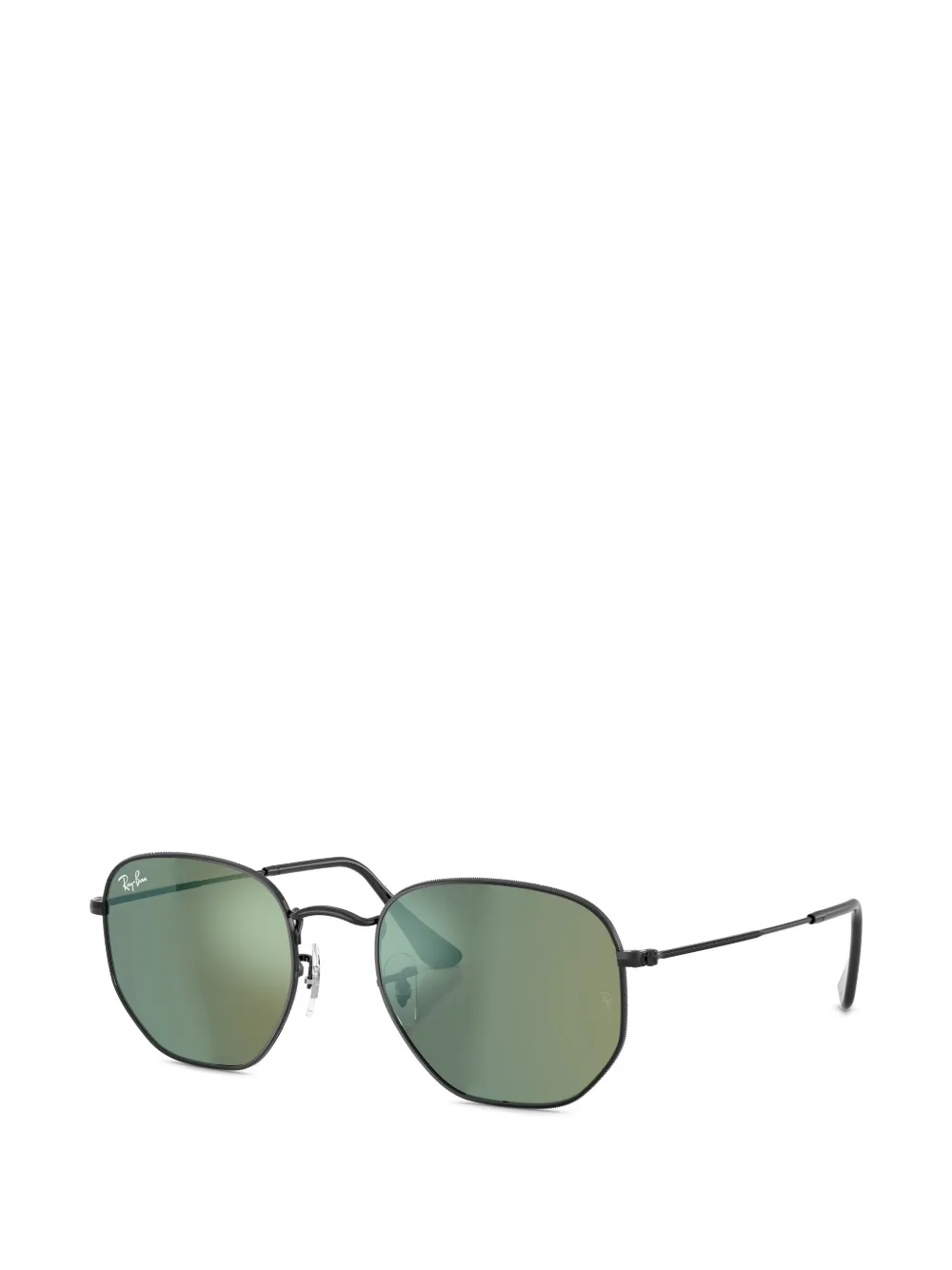 black hexagonal frame mirrored lenses nose pads straight arms These glasses come with a protective case.