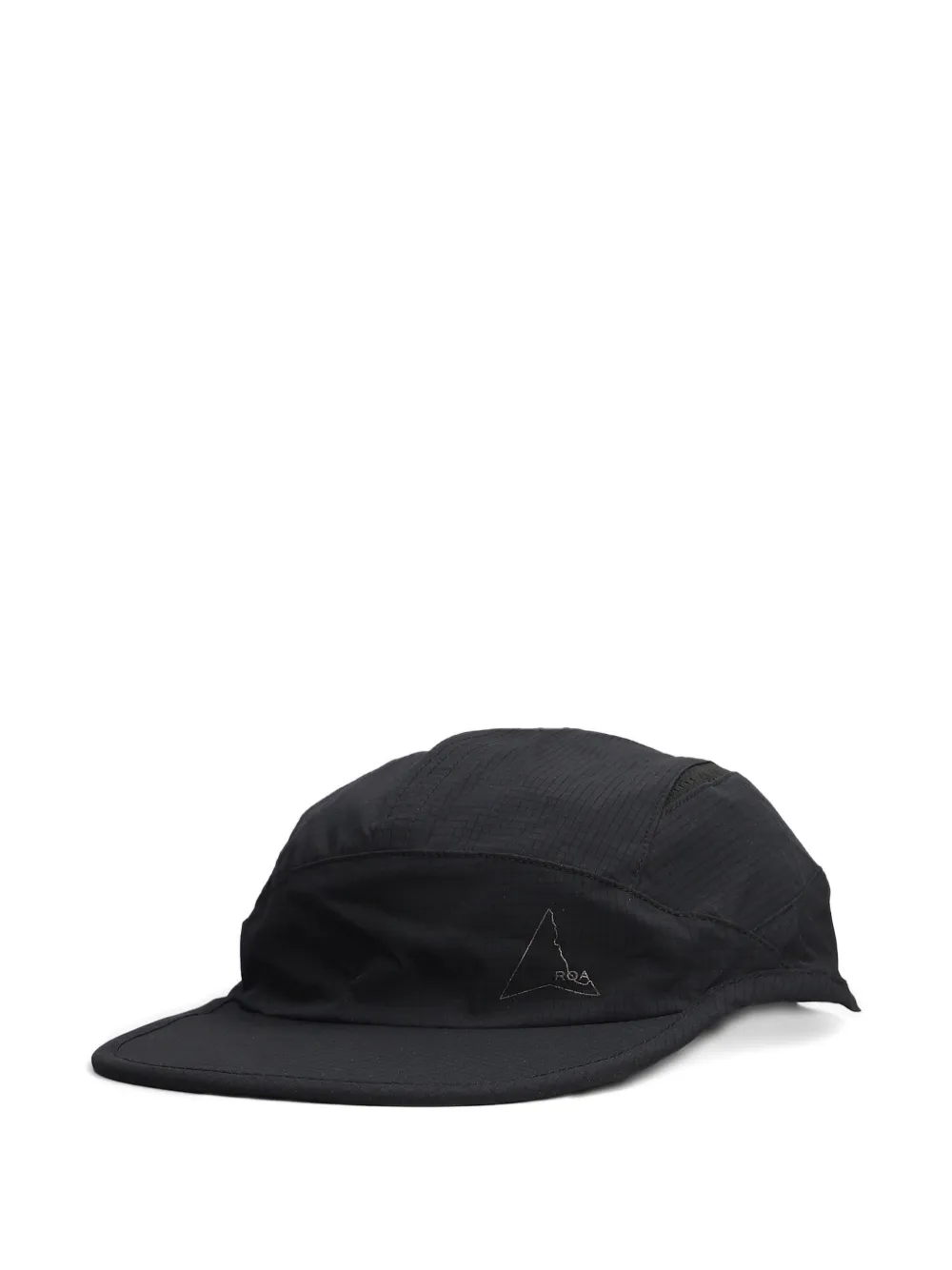black ripstop texture logo print to the front five-panel construction flat brim toggle-fastening drawstring to the rear