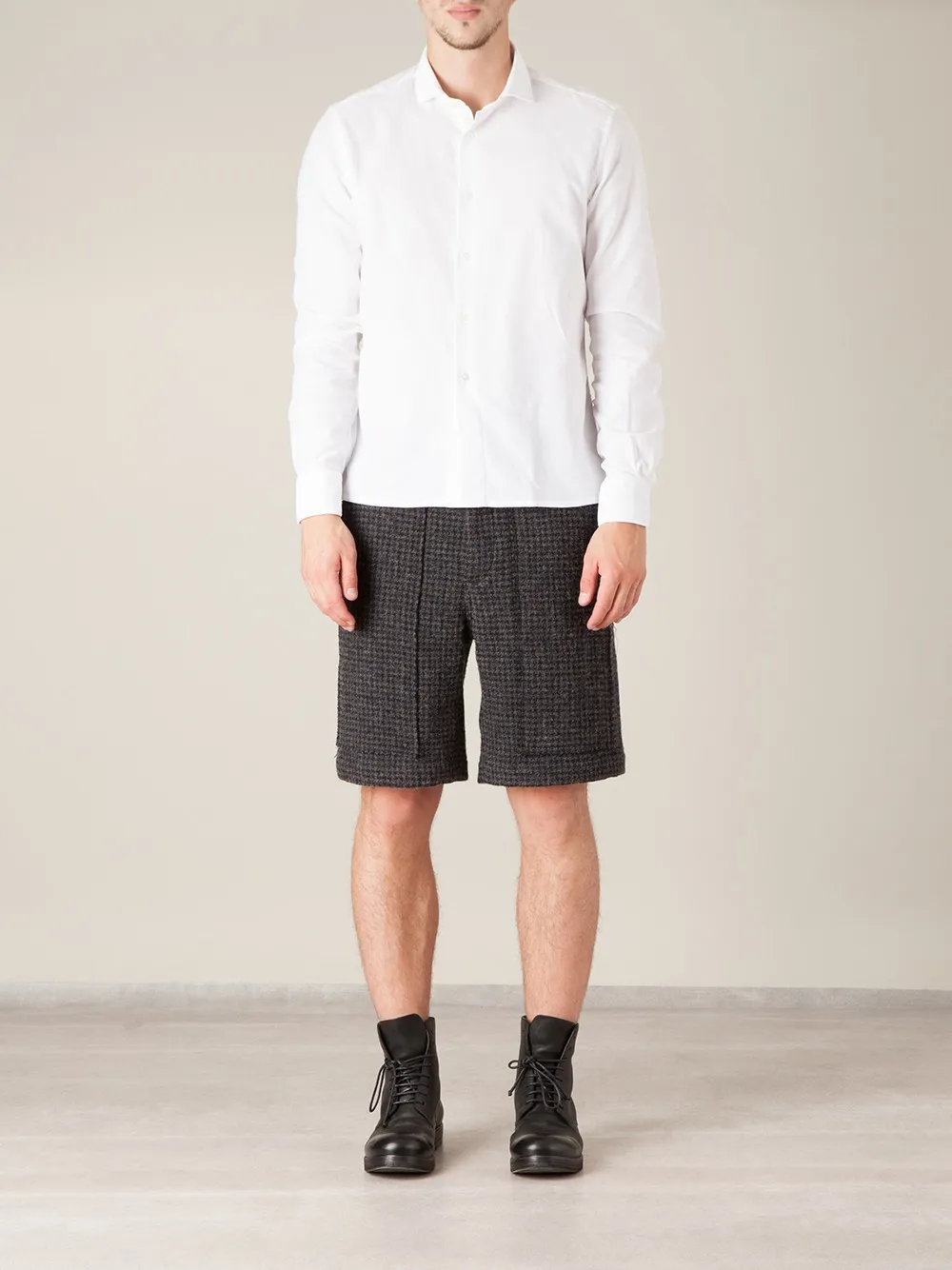 Tweed shorts de color gris de SACAI con pretina con trabillas, botón en la parte superior, cierre oculto, side slit pockets, diseño por la rodilla y bolsillos en la parte posterior.