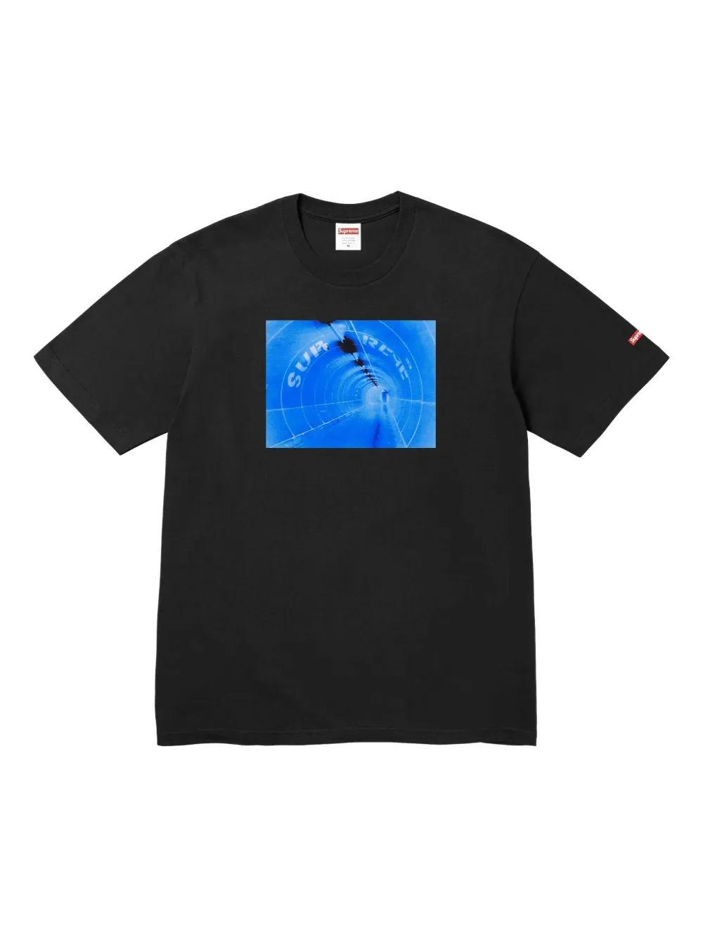 black graphic print short sleeves crew neck logo patch to the sleeve