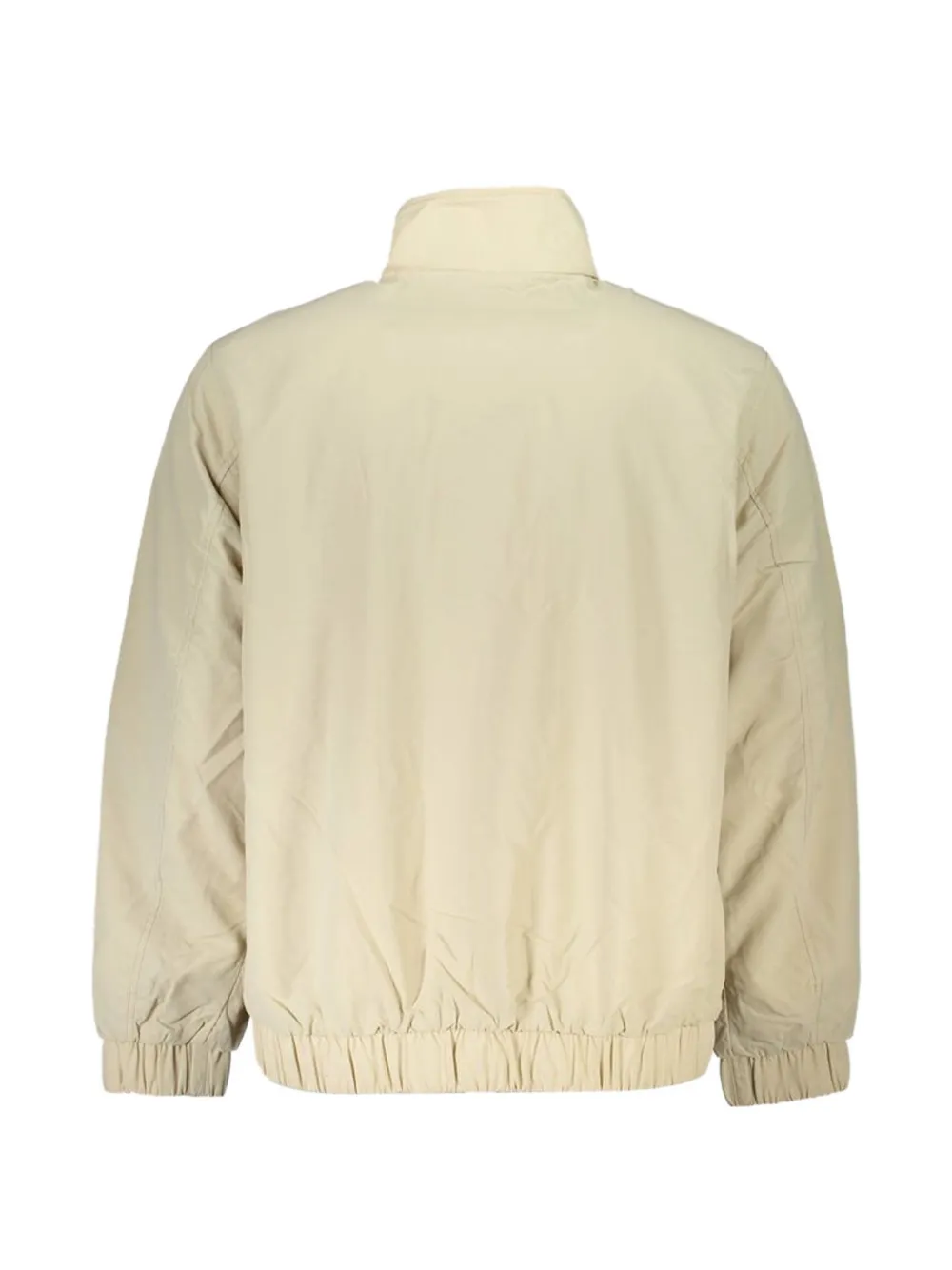 beige logo patch at the chest high neck front zip fastening long sleeves elasticated cuffs elasticated hem two side slit pockets