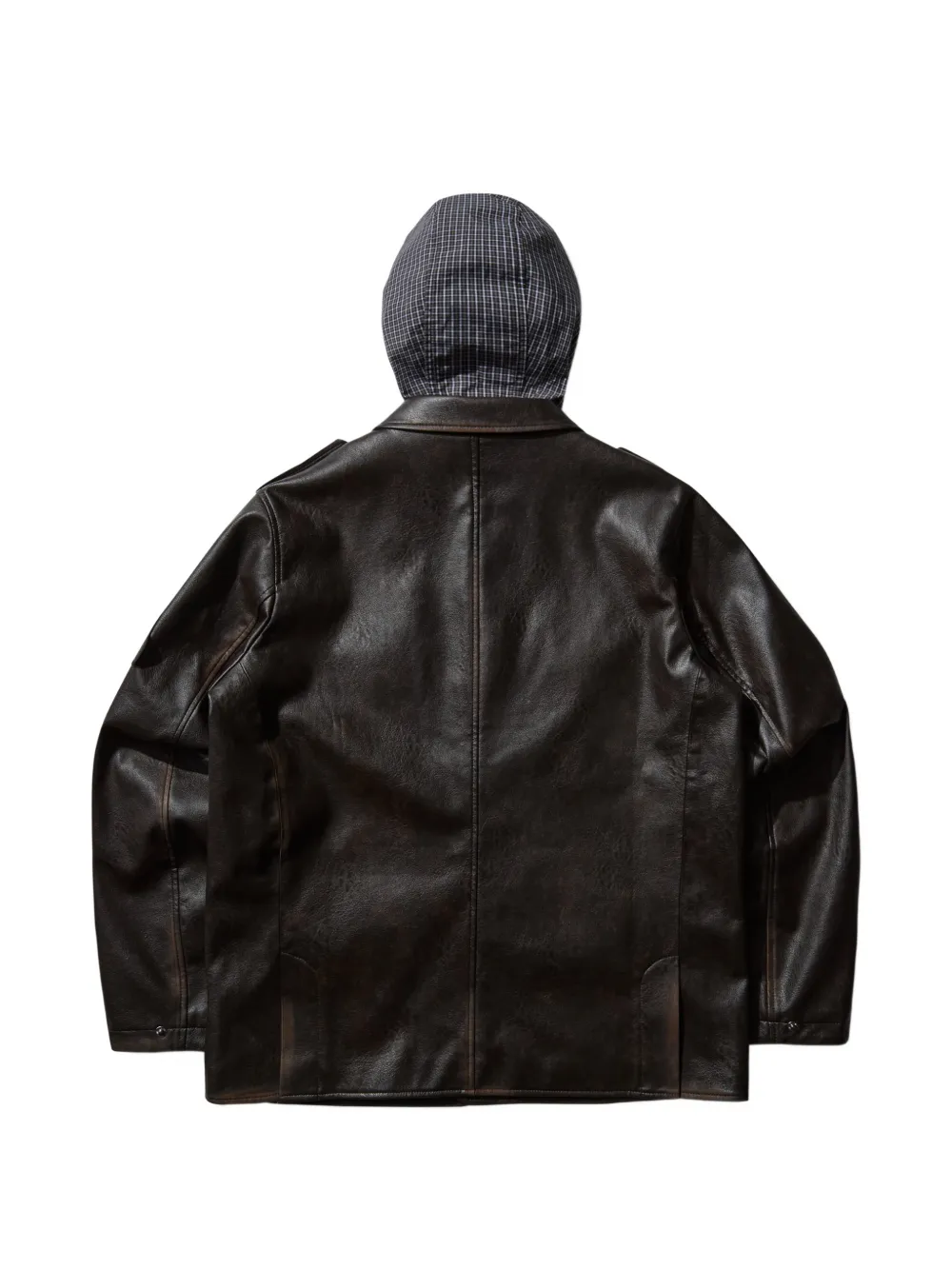 burnt brown flap pockets button fastening hood buttoned epaulettes