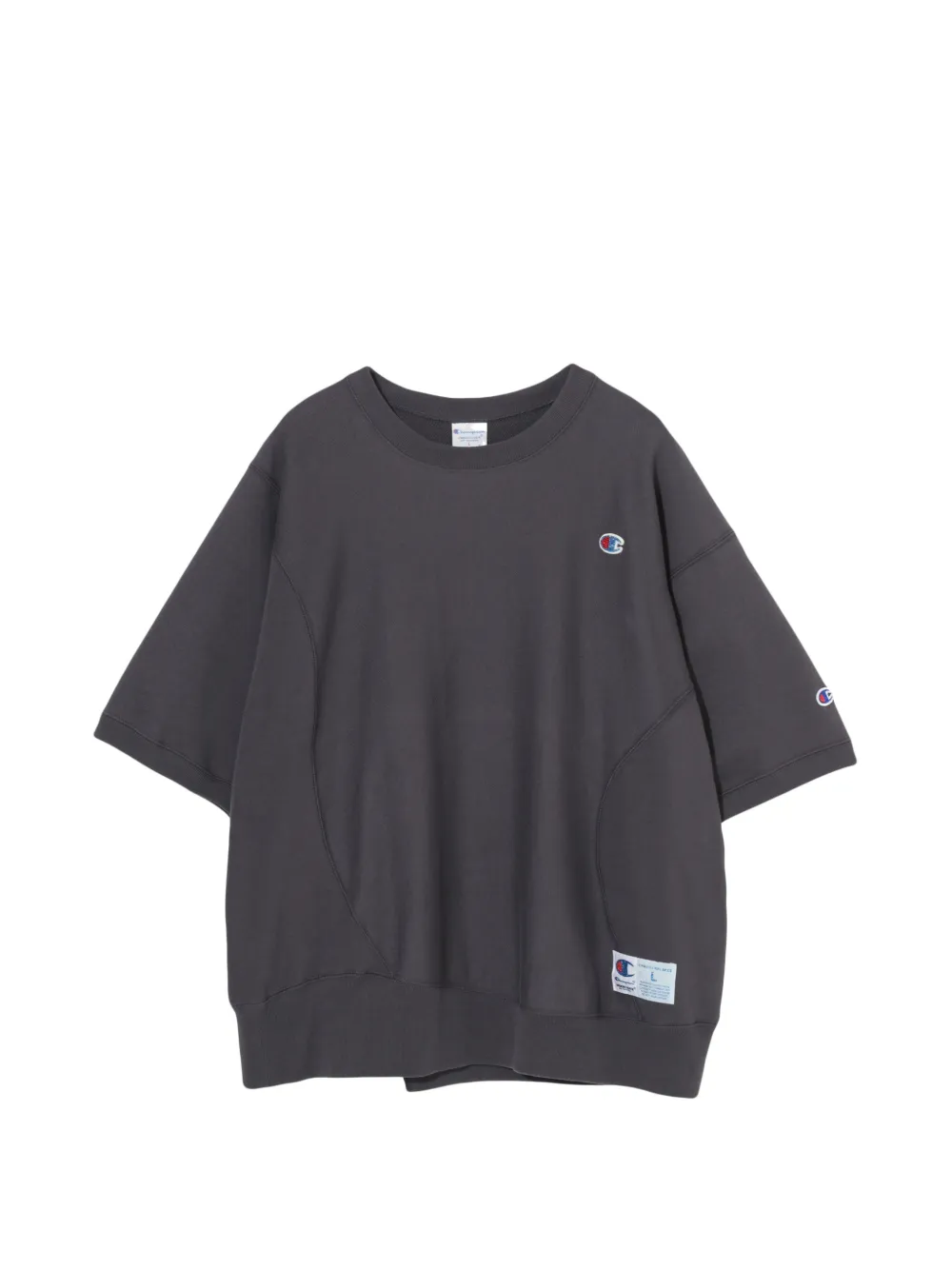 grey logo patch crew neck short sleeves ribbed cuffs and hem