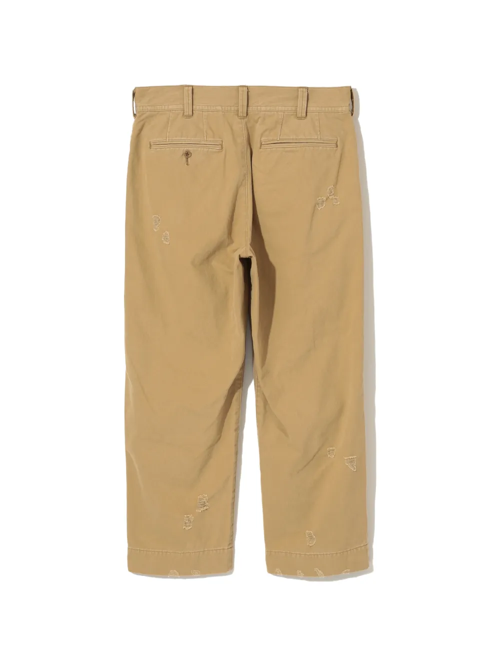 beige patchwork design distressed detailing buttoned back pockets belt loops button fly