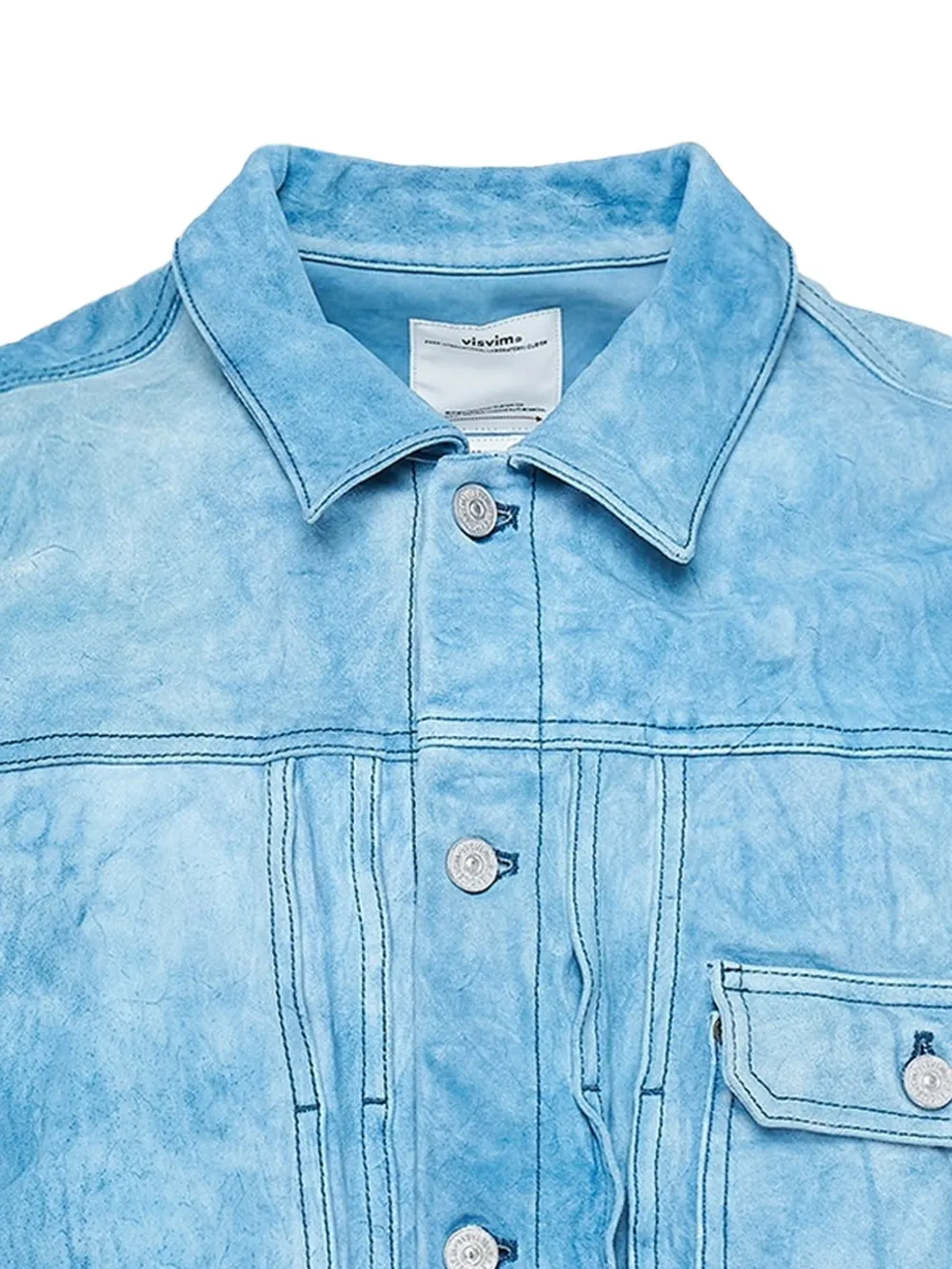 indigo blue tie-dye effect classic collar front button fastening long sleeves buttoned cuffs chest flap pocket pleated detailing straight hem