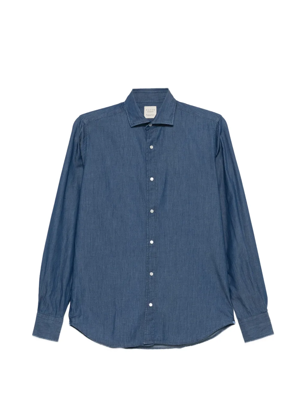blue button fastening long sleeves collared
