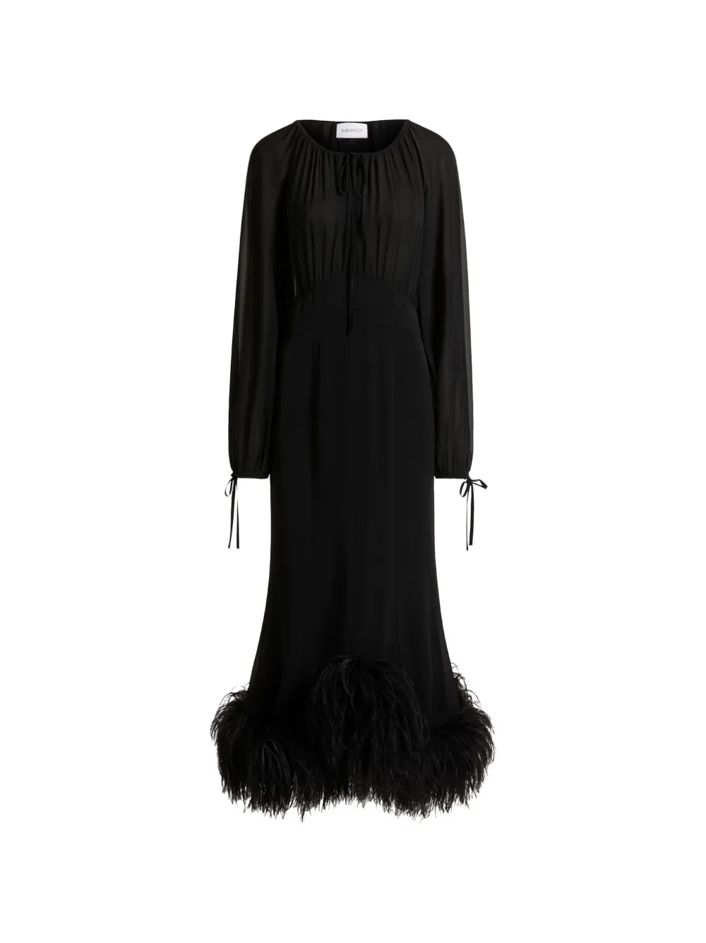 black semi-sheer tie detail long sleeves feather trim