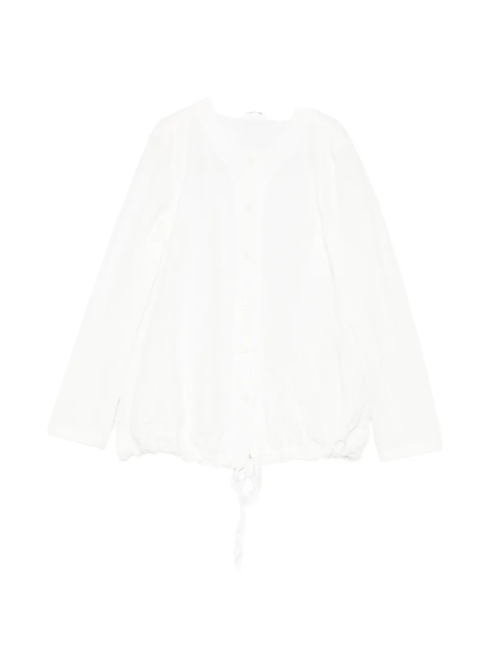 white button fastening long sleeves drawstring hem