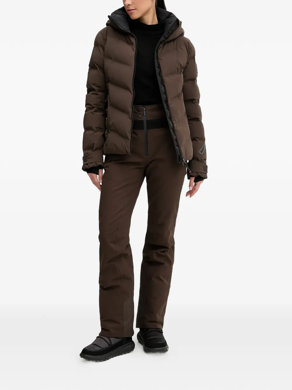 brown chevron quilting hooded zip fastening logo patch zip pockets