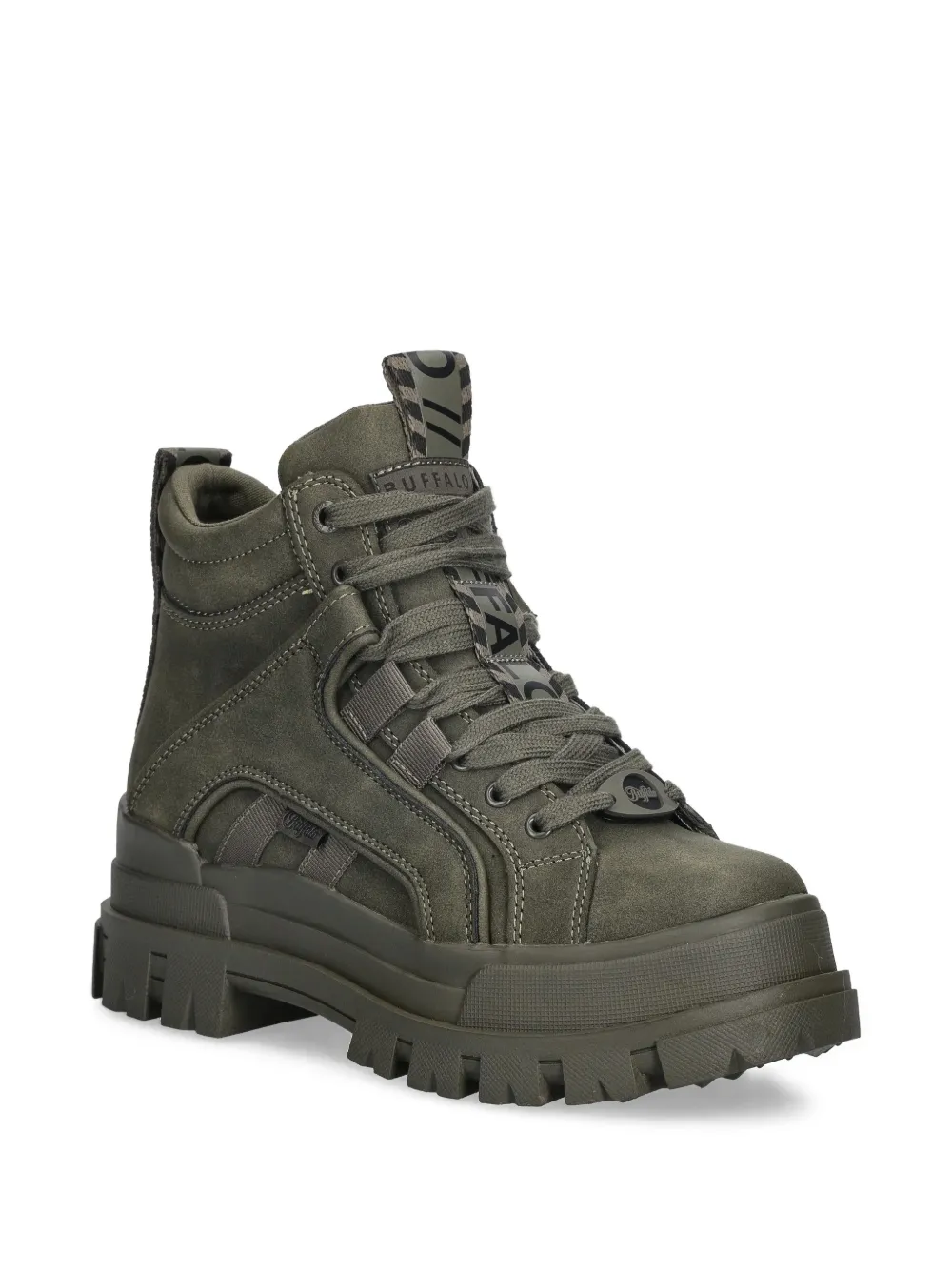 khaki green logo detail lace-up fastening tread sole round toe ankle height