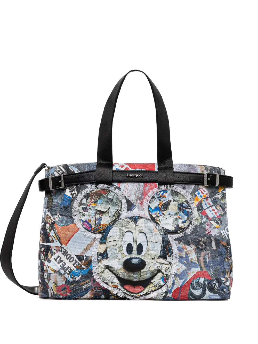 white/multicolour print top handles detachable shoulder strap fringed trim zip fastening