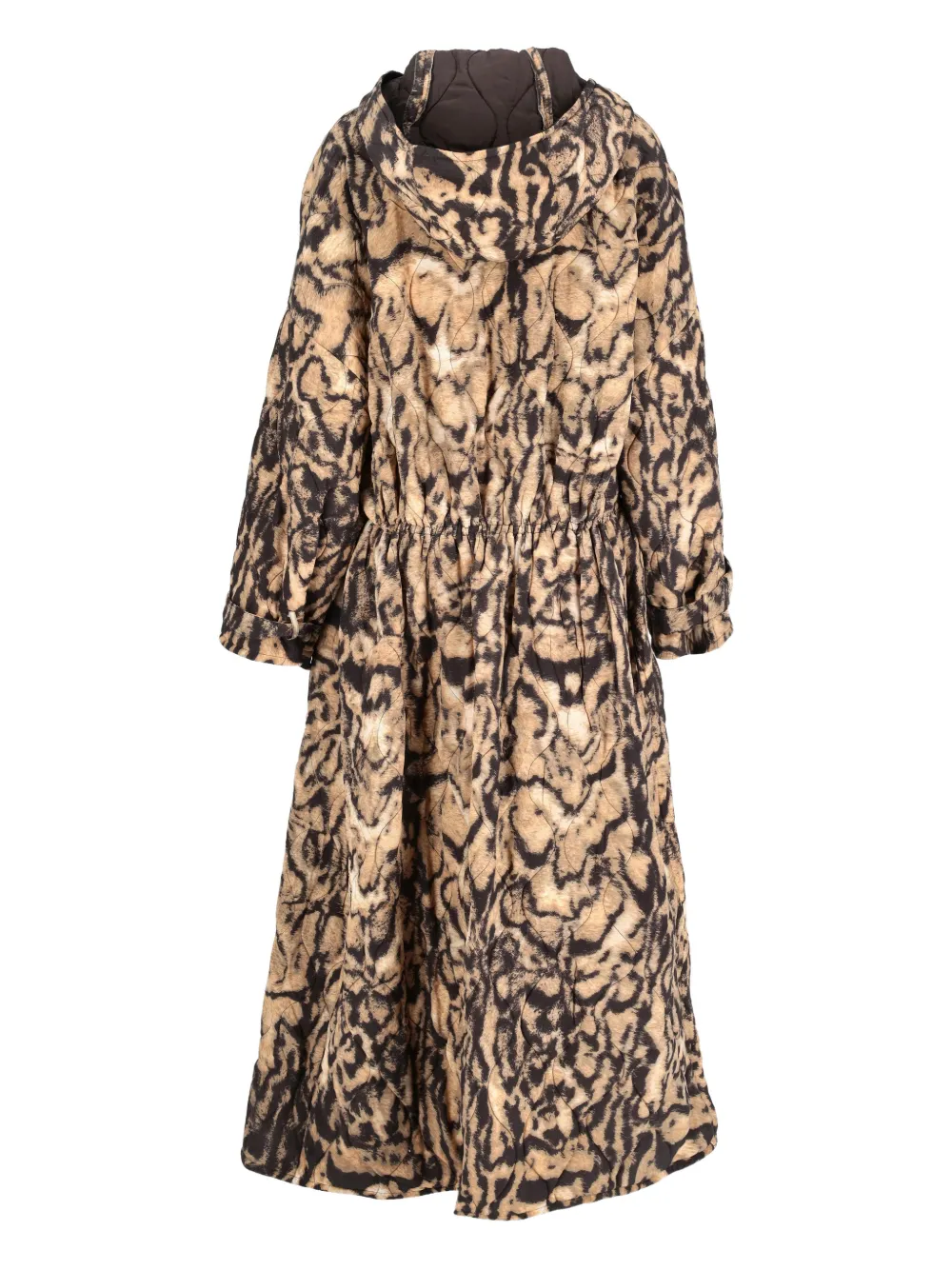 light beige silk leopard print side zipped pockets elasticated waist hooded belted sleeves Condition: EXCELLENT. This previously owned item is in near-perfect condition with no signs of damage or use.