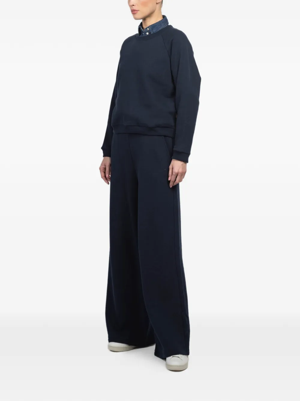 suéter con cuello redondo y mangas raglán