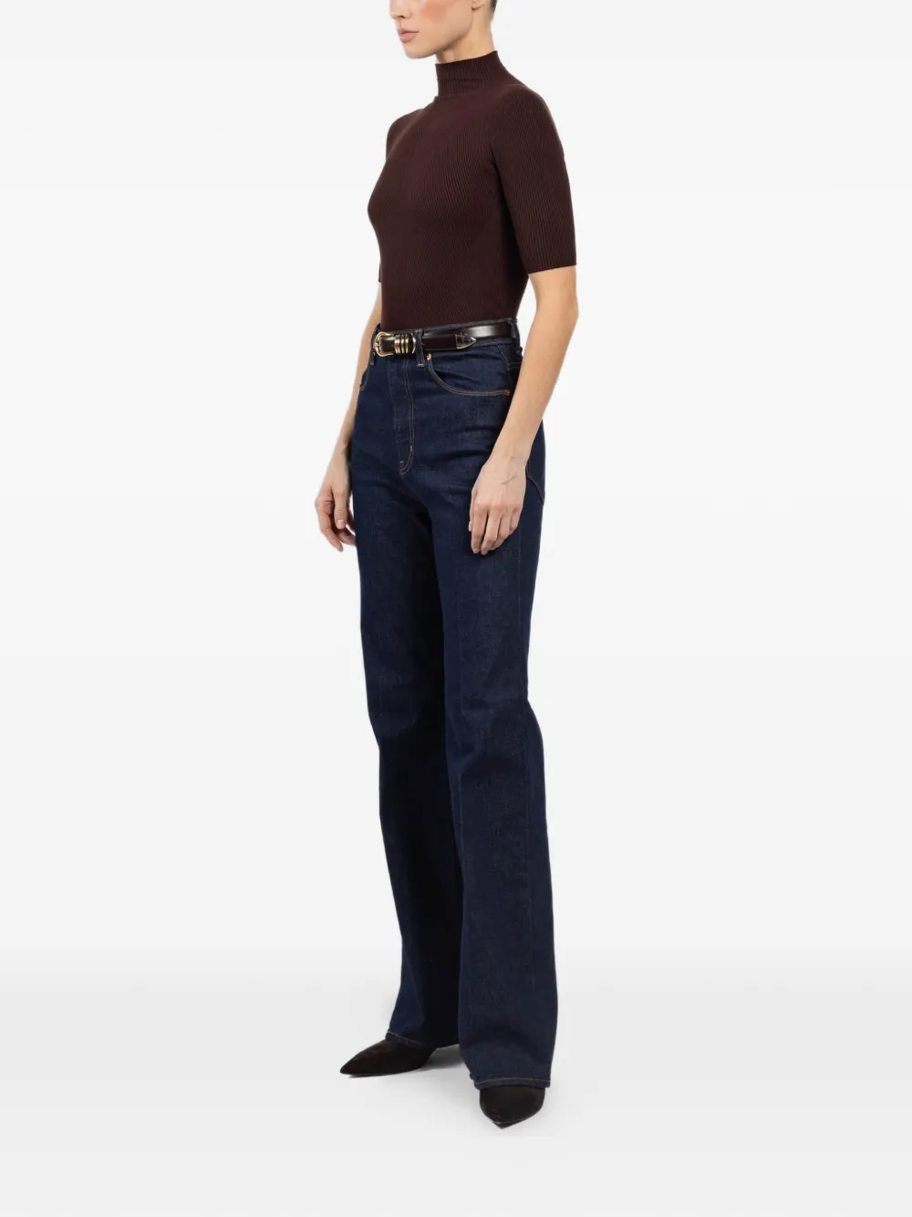 playera tejida de canalé con cuello alto
