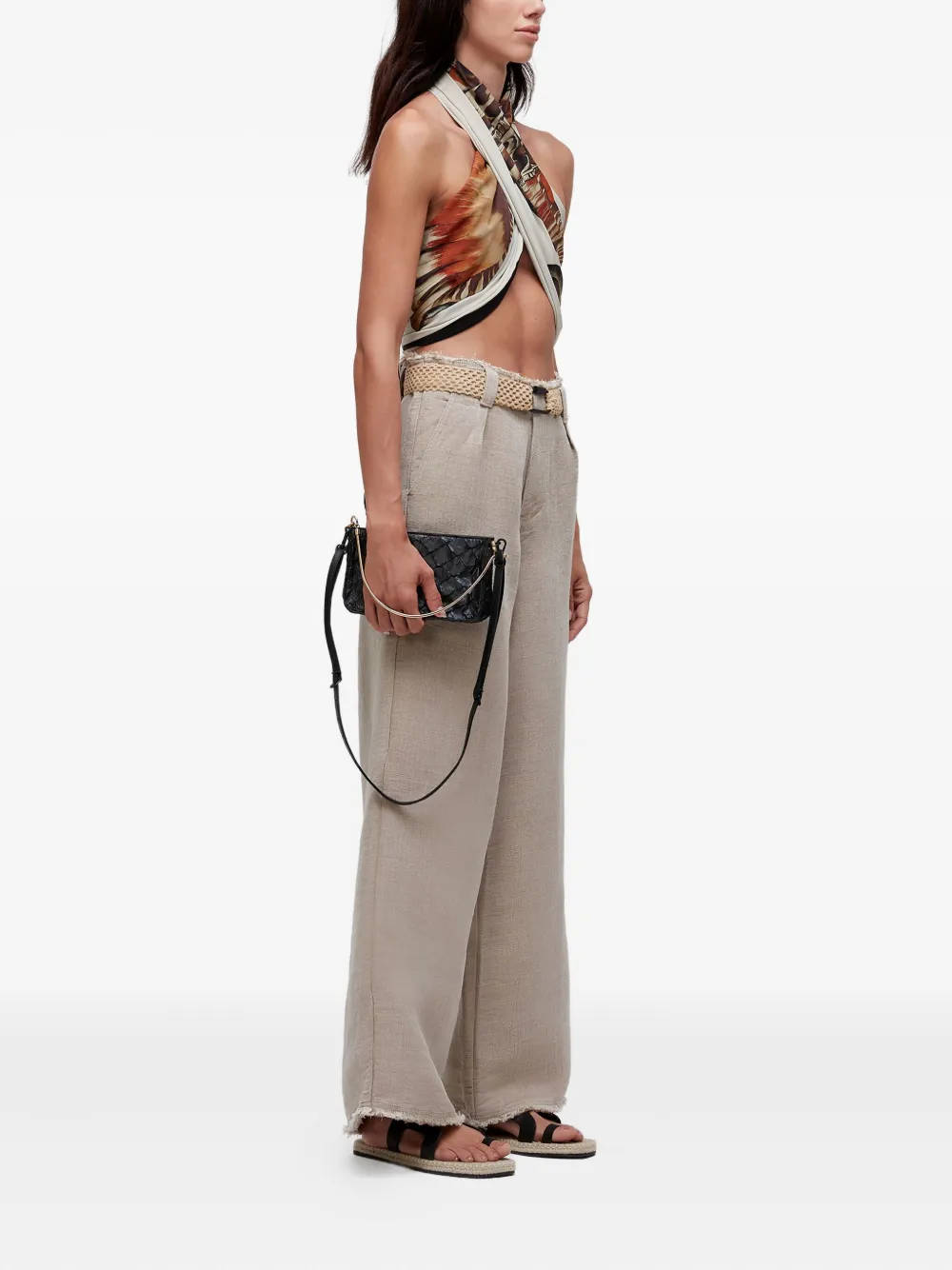 pantalones anchos con bordes deshilachados